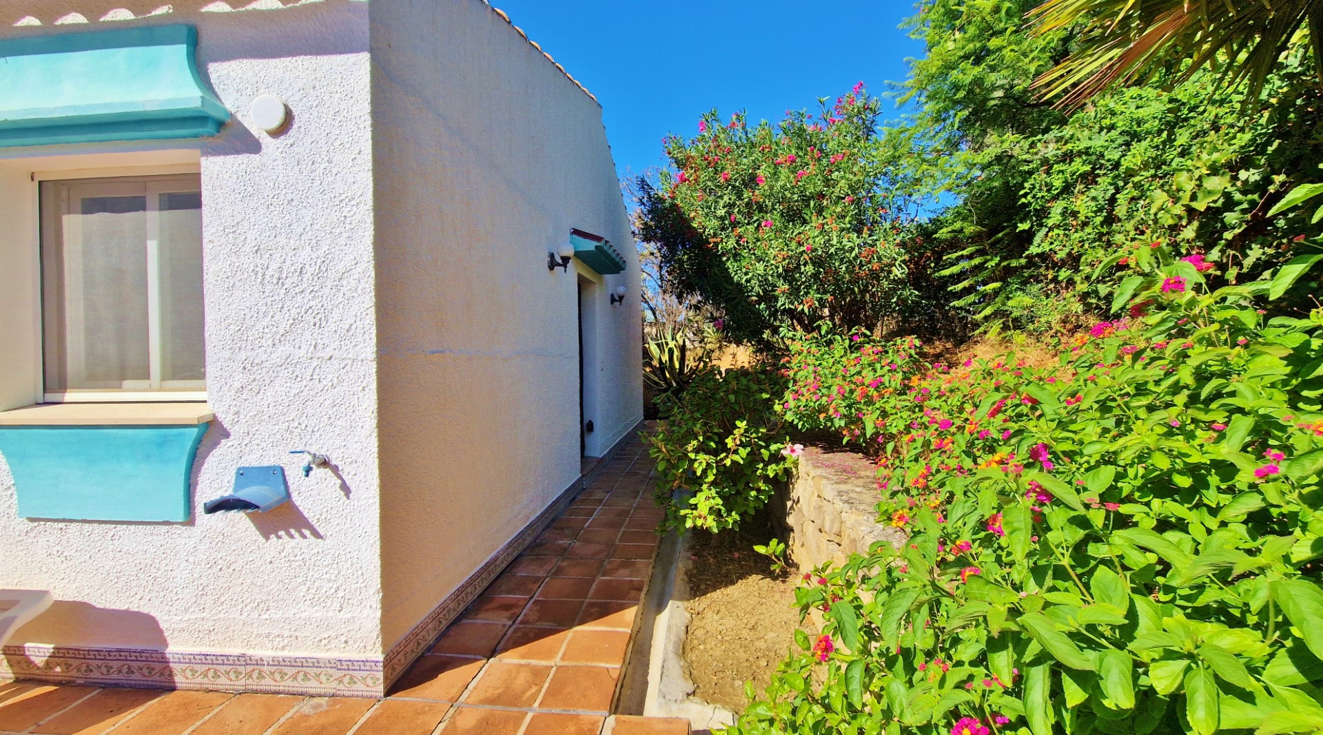 Situated on a quiet cul-de-sac in a country development, Villa Jardin is one of four villas in a private gated community of settled neighbours on the Cortijos Romero urbanisation. It is very peaceful, quiet, safe and very secure. The house is in good condition with a beautiful garden and pool.