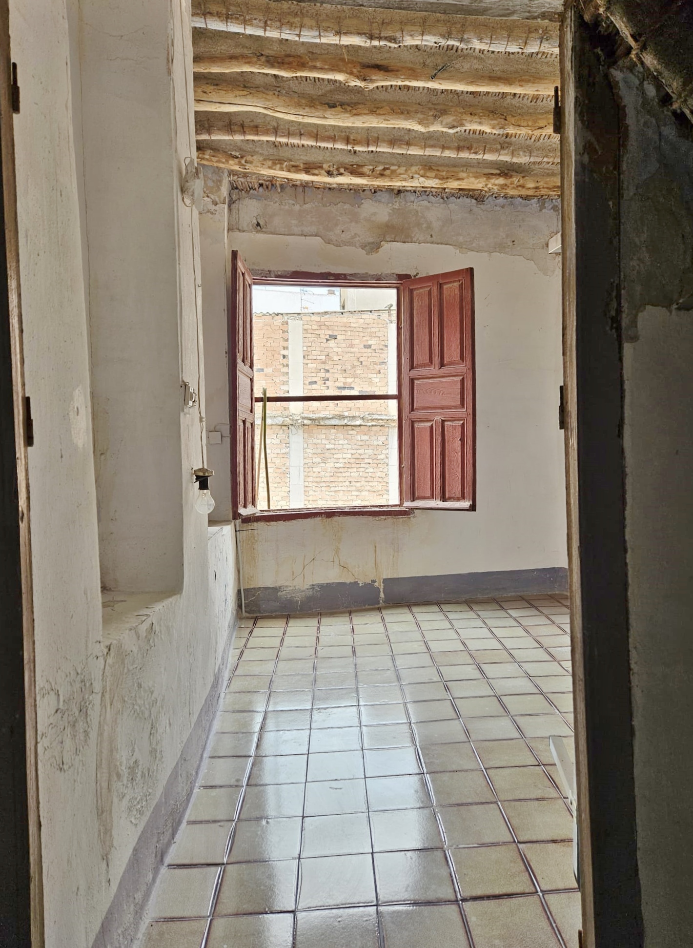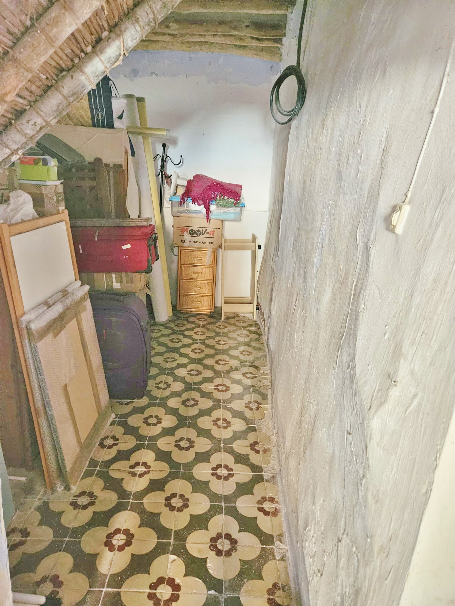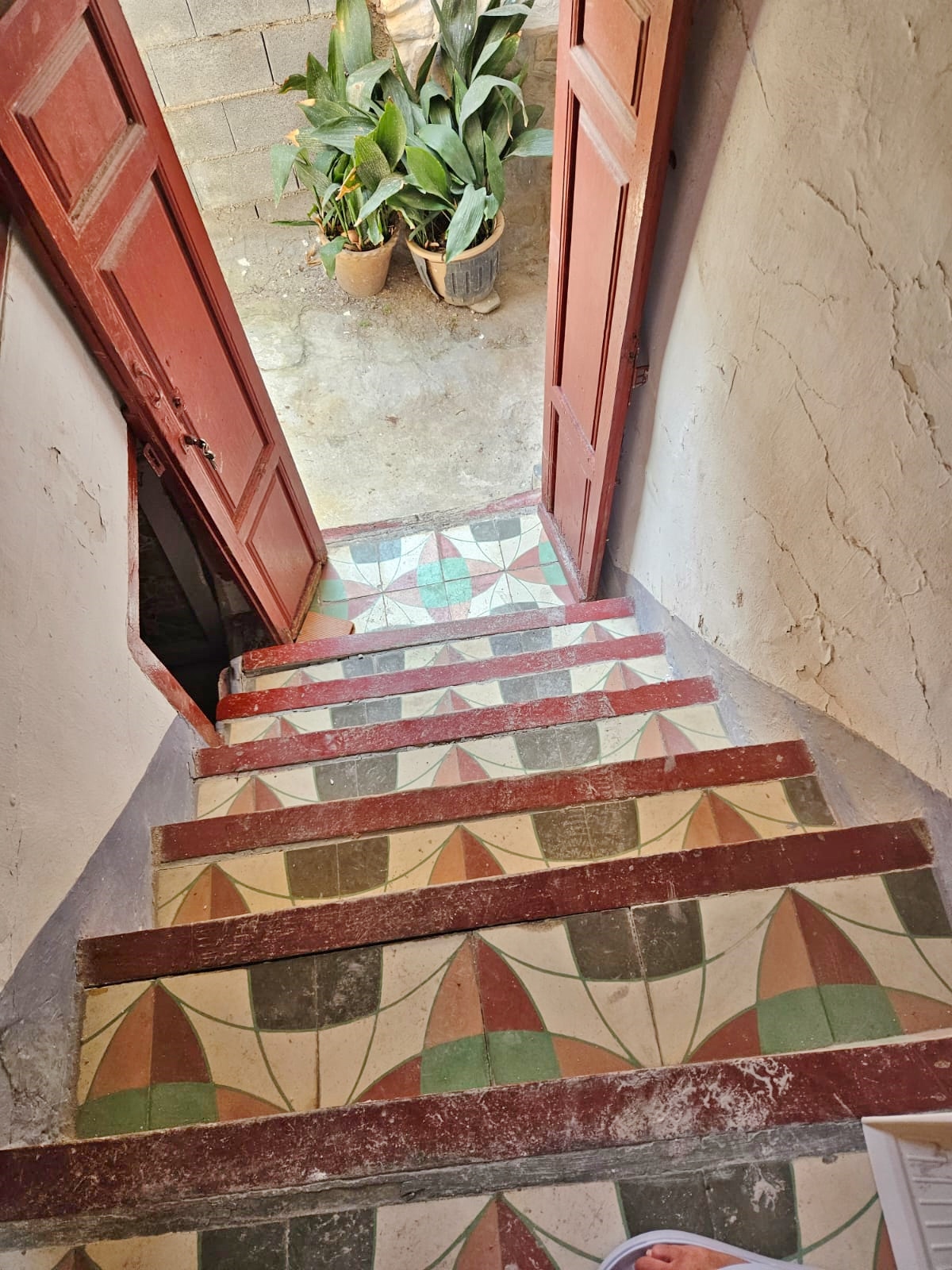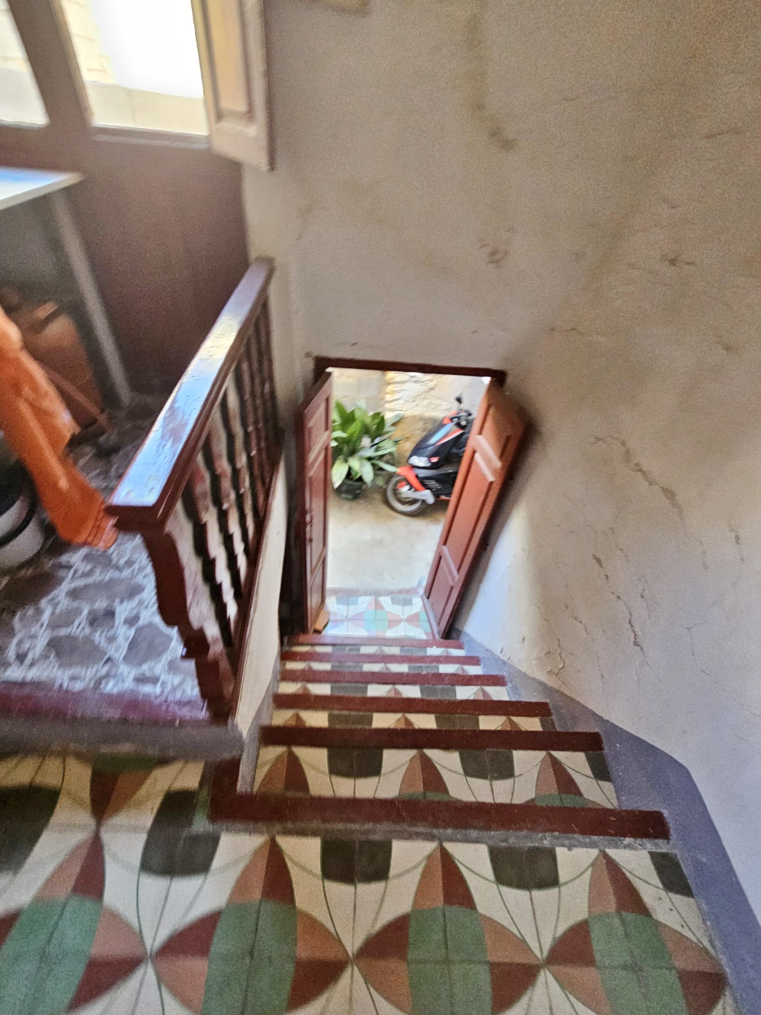Casa Radha still has its original, bright, coloured floor tiles and ceilings with original beams and cane features, as well as thick walls and ancient wooden doors and windows.  The house needs renovation, but the structure is sound.