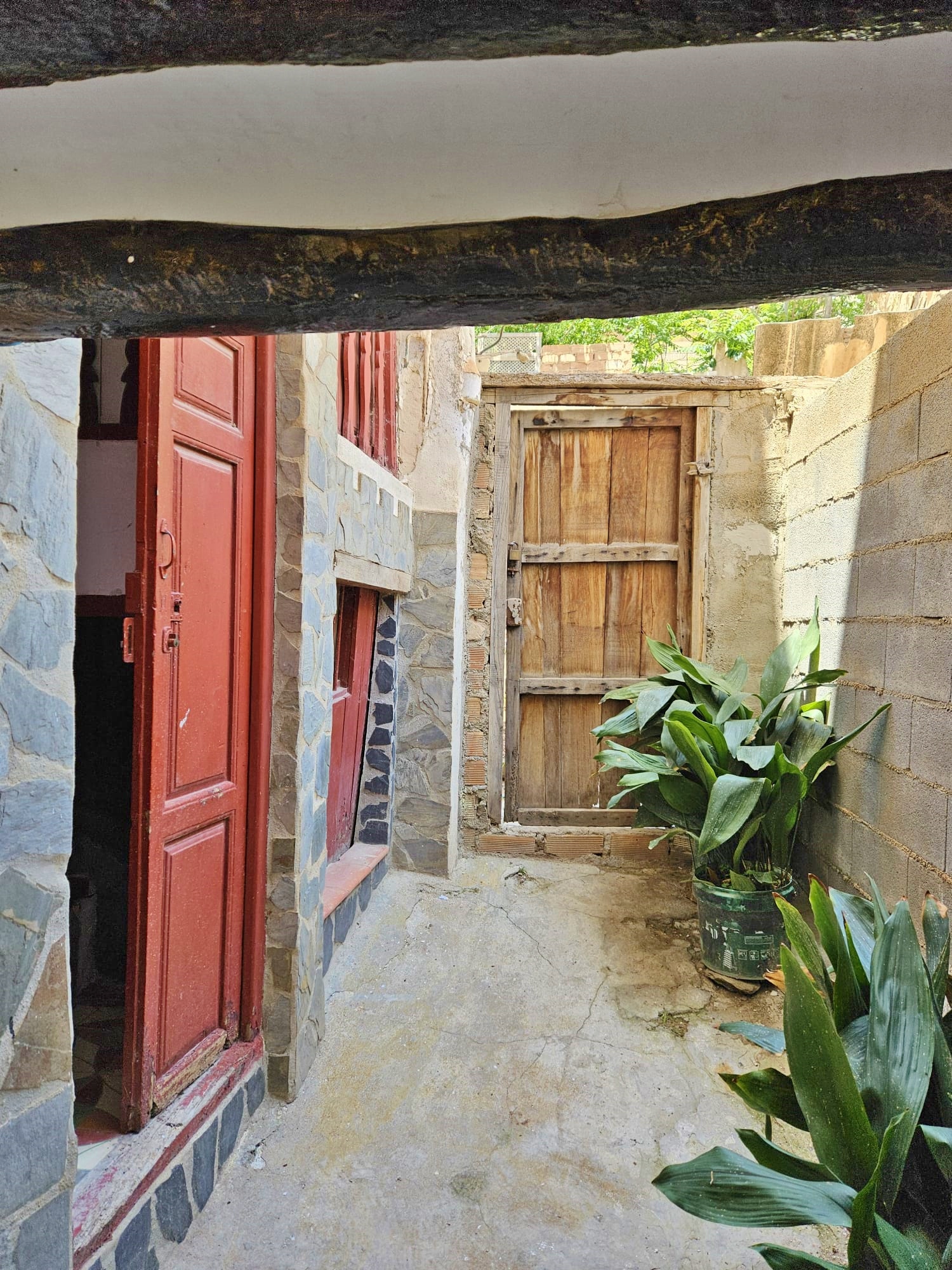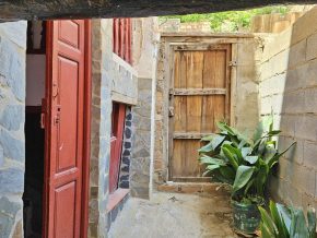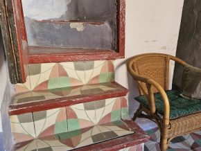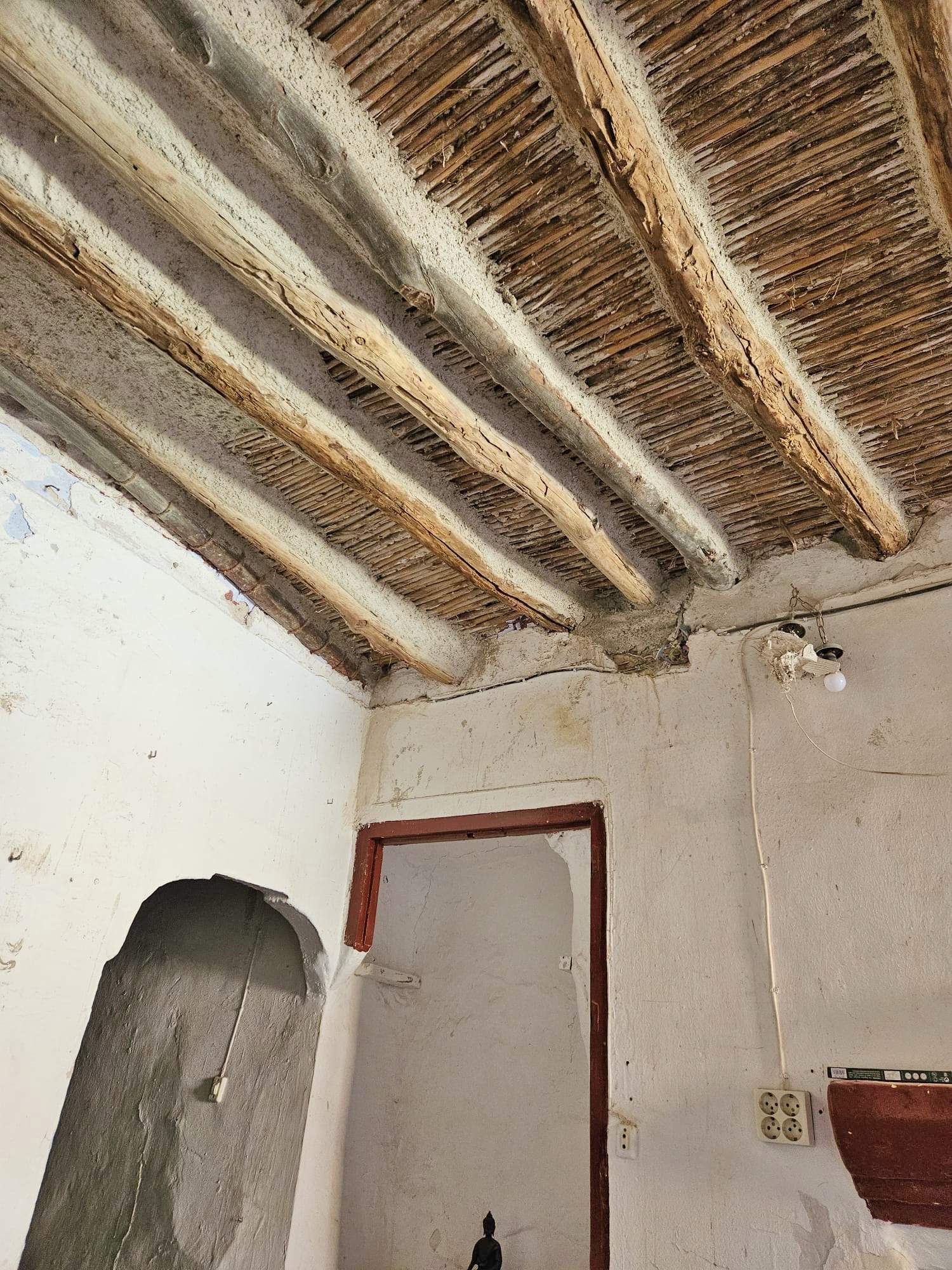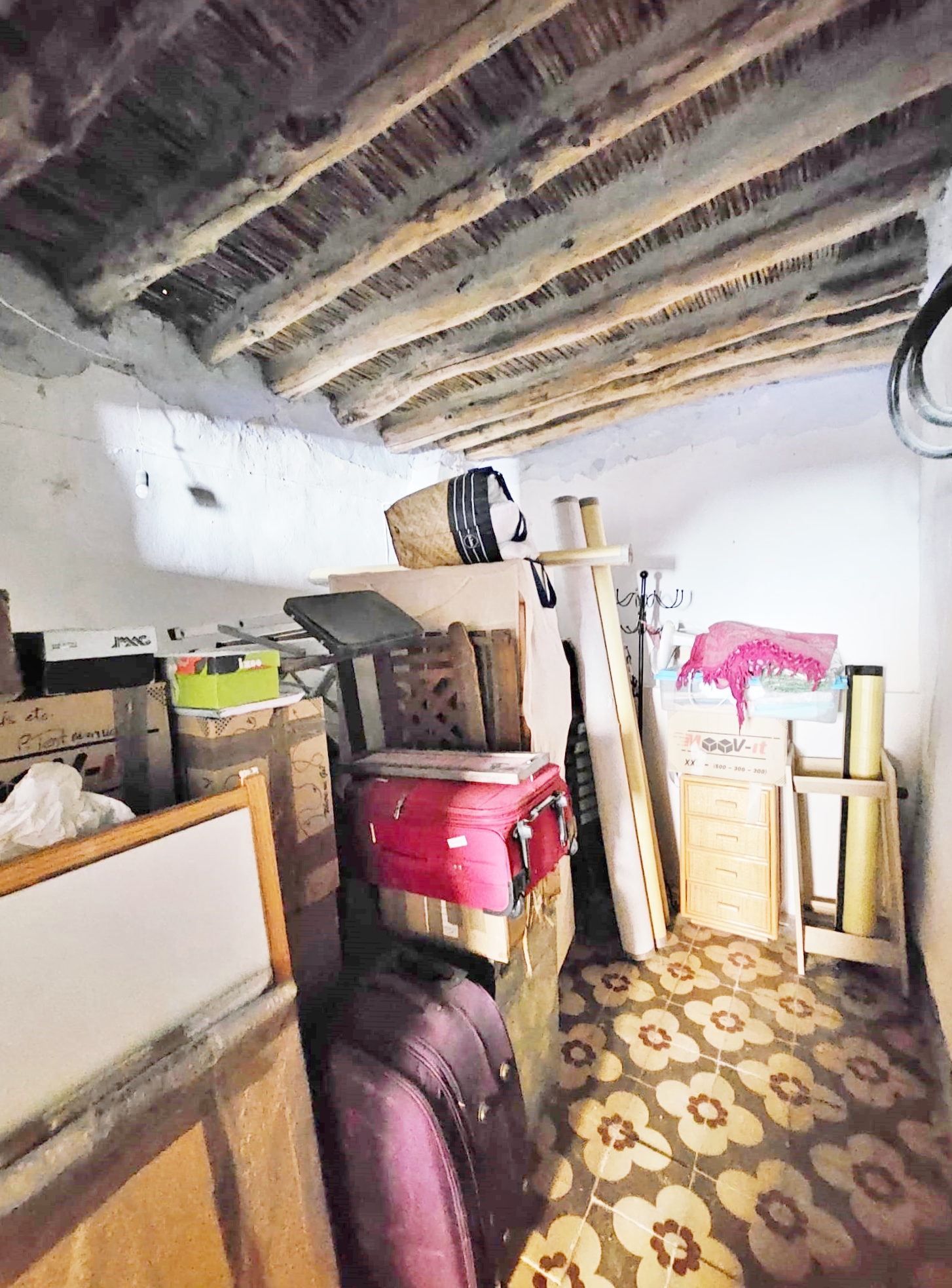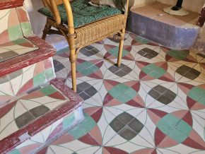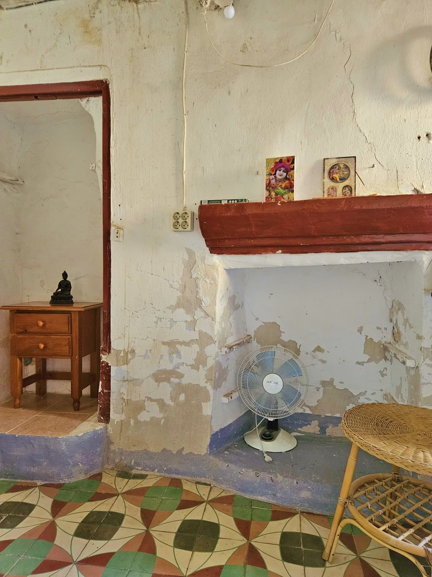 Casa Radha still has its original, bright, coloured floor tiles and ceilings with original beams and cane features, as well as thick walls and ancient wooden doors and windows.  The house needs renovation, but the structure is sound.