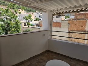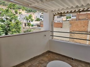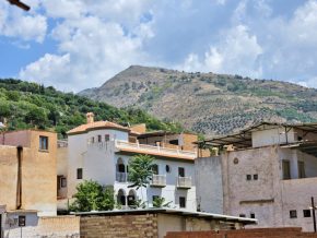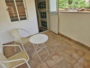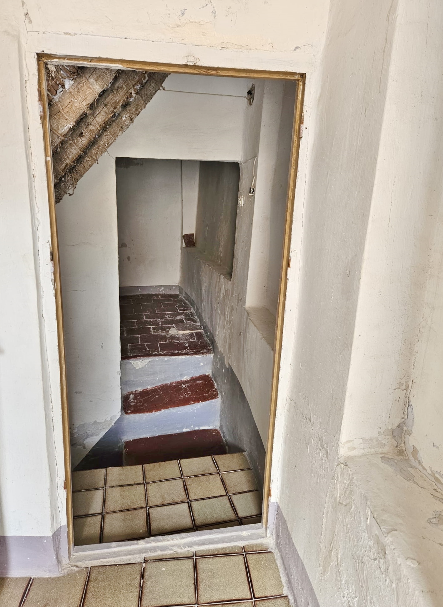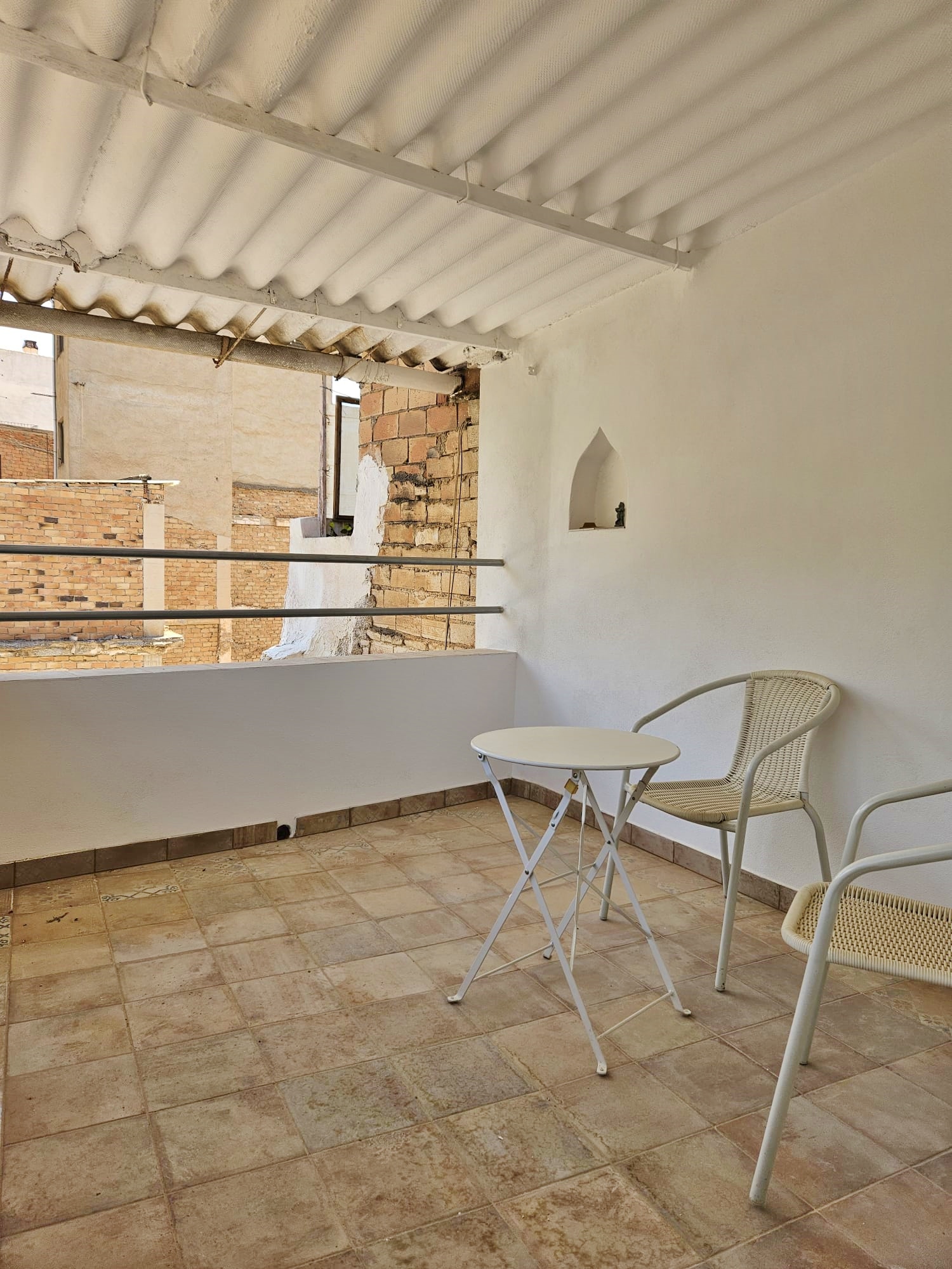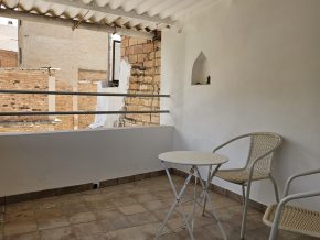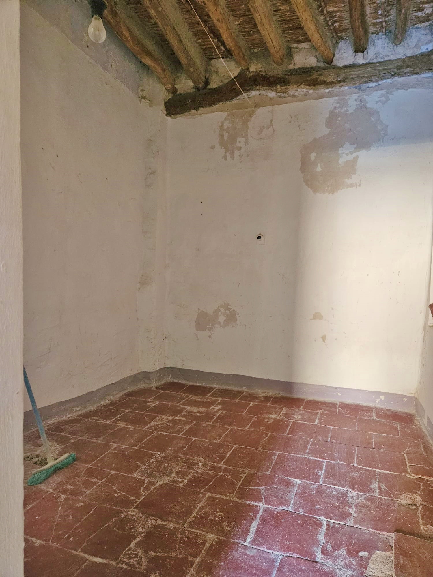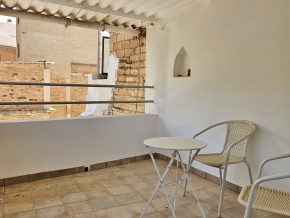 Steps lead up to the first floor, with a bedroom plus a room that would make a perfect bathroom.  Finally, steps lead up again to the second floor, with a second bedroom and a door to the terrace, with views across the town and the countryside beyond.