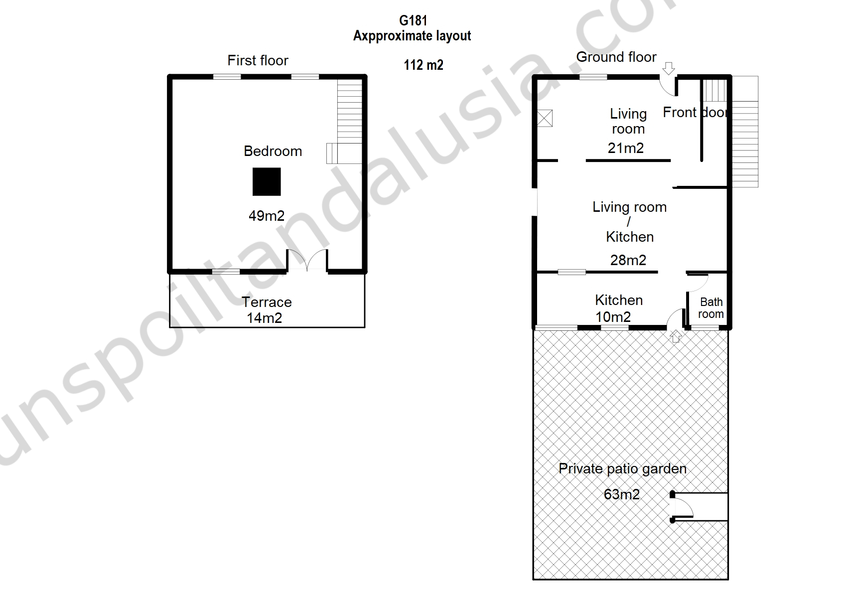 1-2 bedrooms – 1 bathroom – two floors – rear garden – productive land with irrigation water