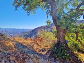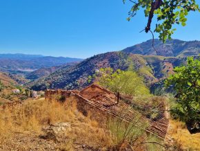 House around 37m2 to restore – plot 1886m2 – beautiful views – steep, but near access to country lane – within 10 minutes of Comares