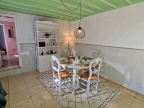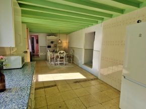 The main house consists of an open plan living room/kitchen with beams and an old fashioned stove in the kitchen. The kitchen may need updating depending or requirements, but is perfectly useable. To the far left is a door to a large bathroom (around 2 x 3.5m). Ahead is an opening leading to the staircase, with two large bedrooms on either side (each around 4 x 4m).