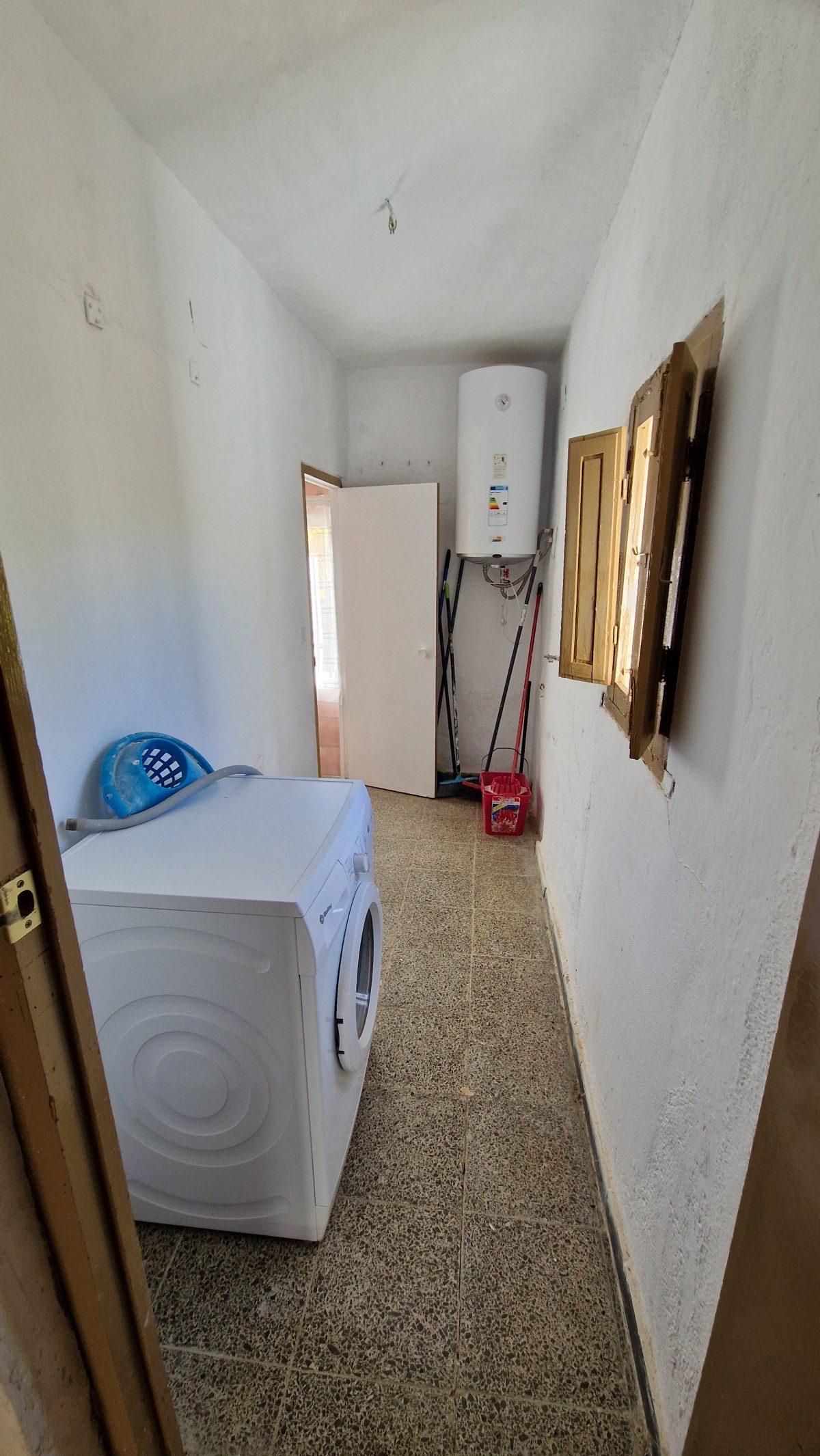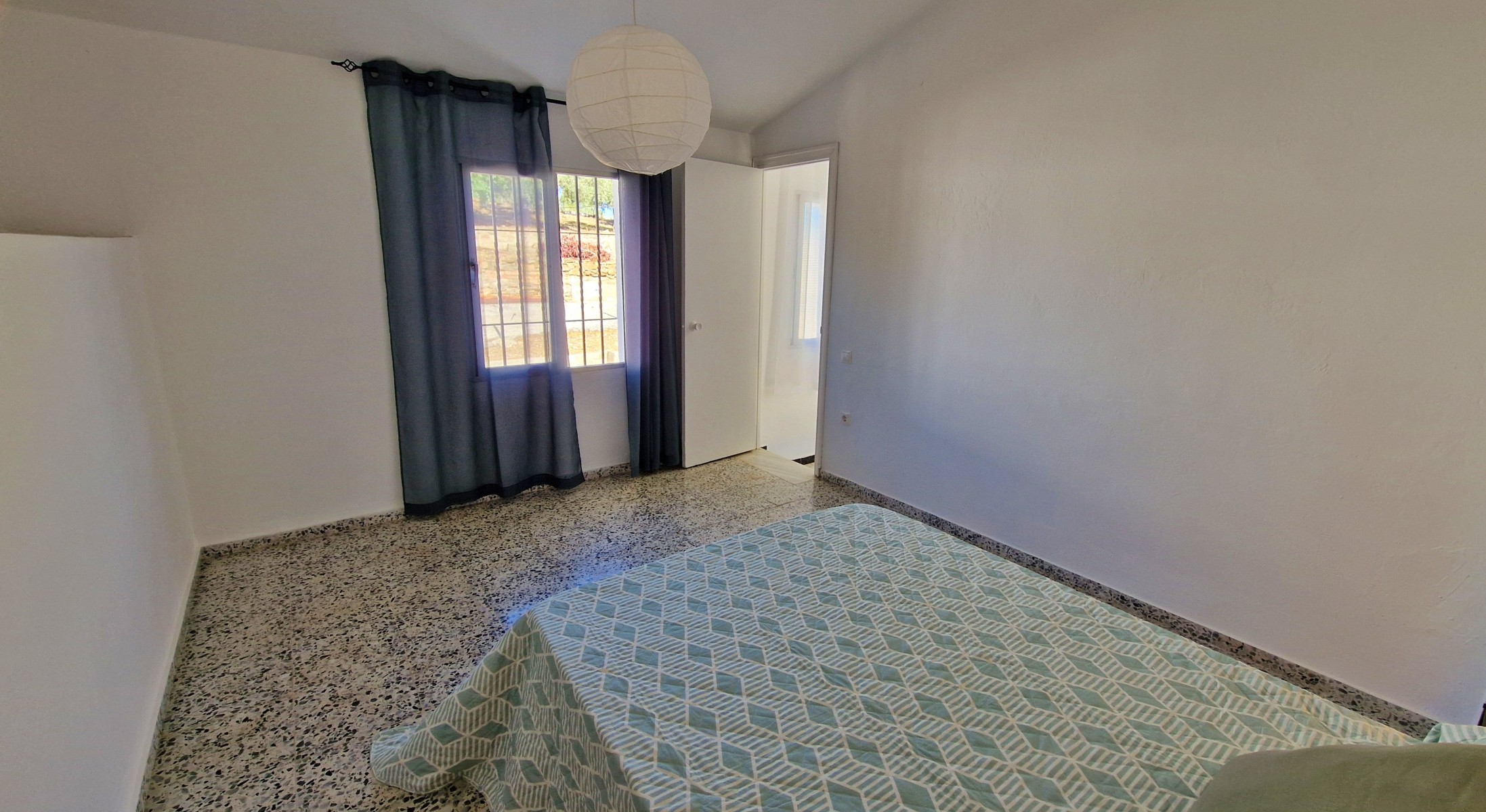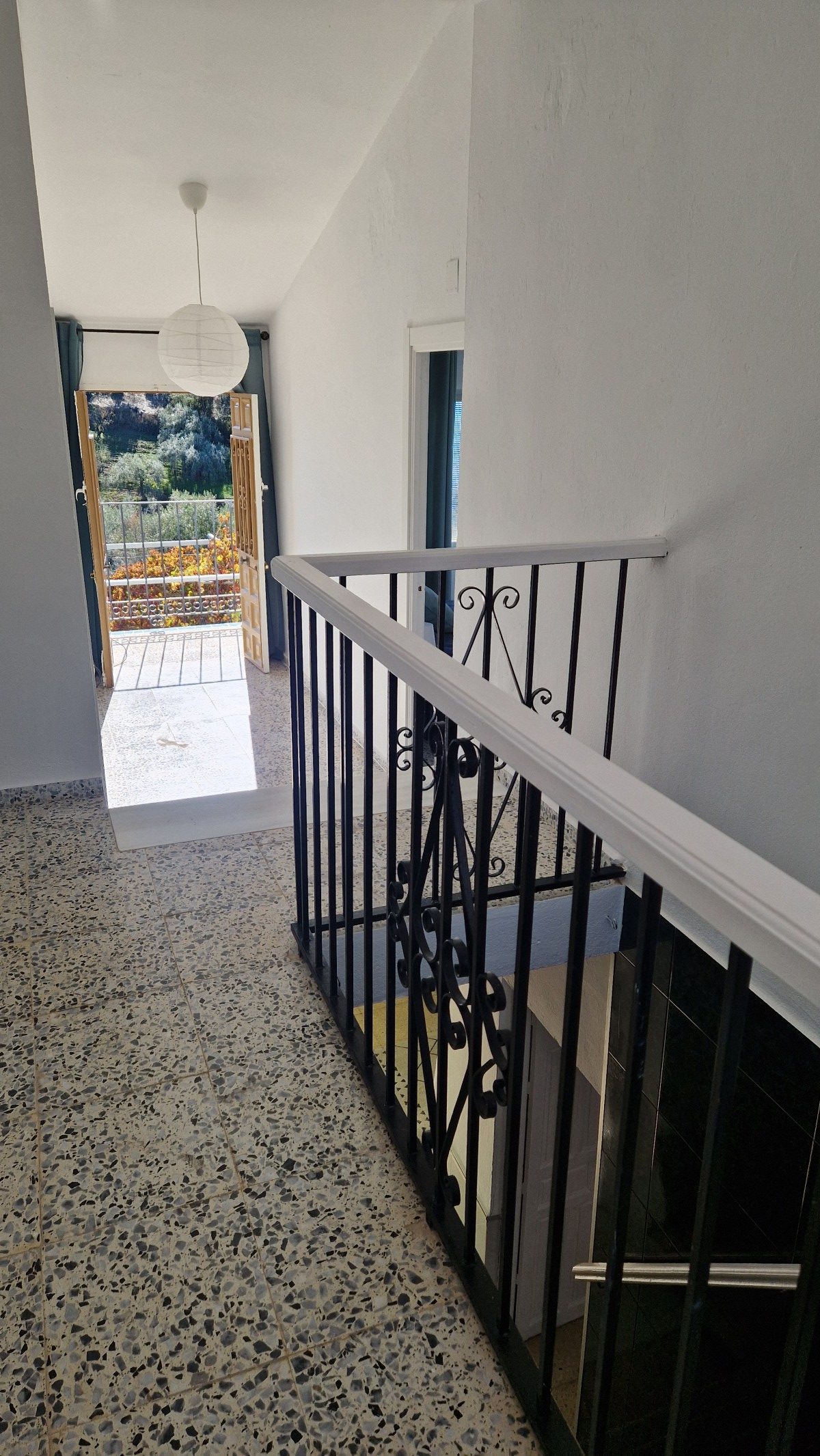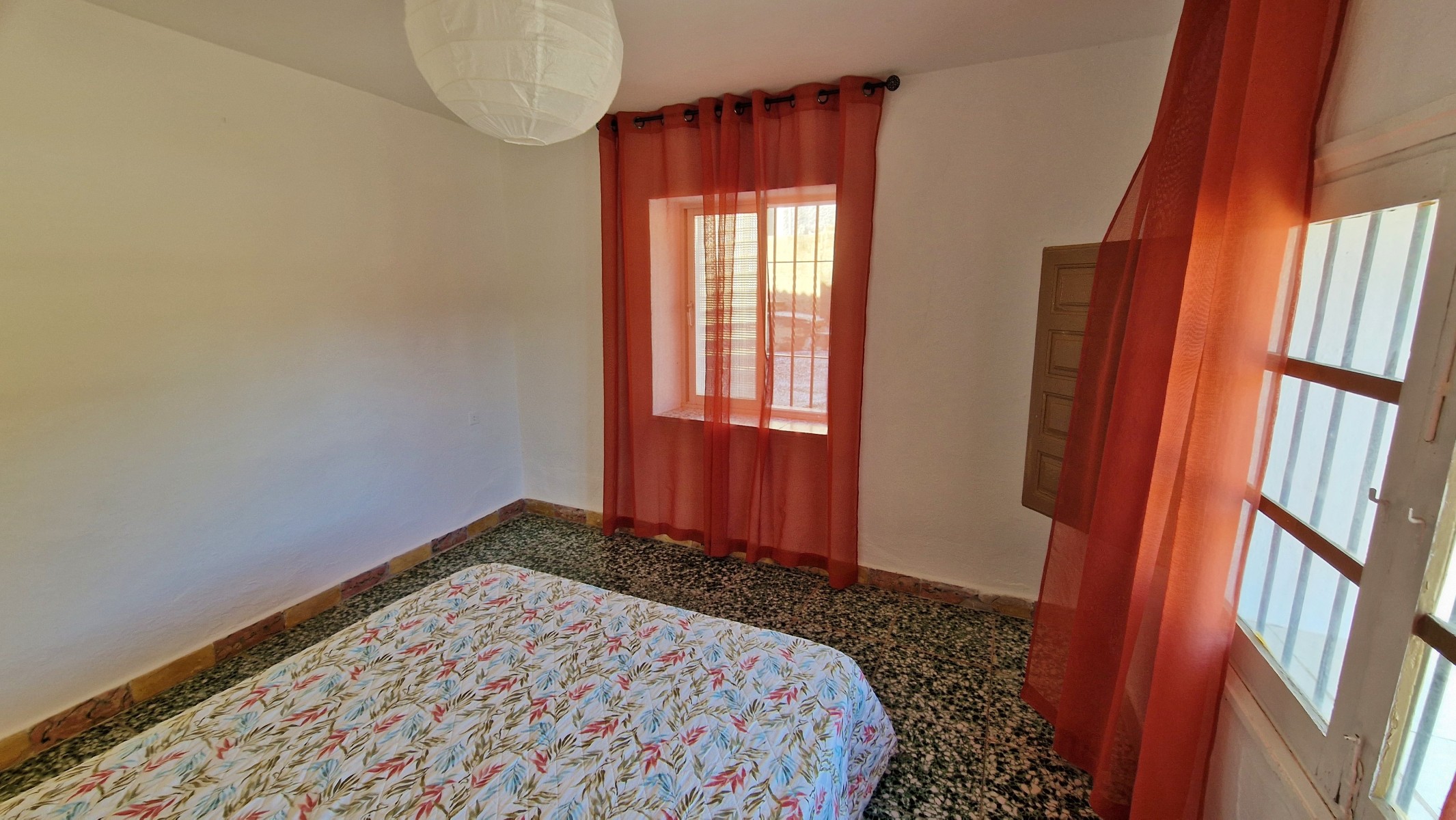The stairs are steep, but well made and whilst it may be possible to eliminate this staircase, using the second staircase (see below), it also is part of the original character of the house. At the top of the stairs, is an upper landing area, which leads right through to the front of the house with double doors to a balony. Upstairs are four very large, light and bright bedrooms, (3 x 4m and 4 x 4m). From the balcony is a wonderful view across the mountains and the valley below, with other cortijos scattered around on the hills around. Upstairs it would not be difficult to sacrifice one bedroom to create two bathrooms (one of which could be an ensuite) although there is space to create small shower rooms in most of the rooms if the plumbing can be designed and distributed correctly.