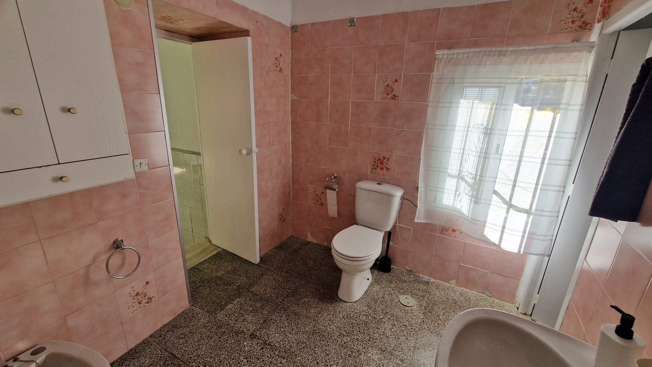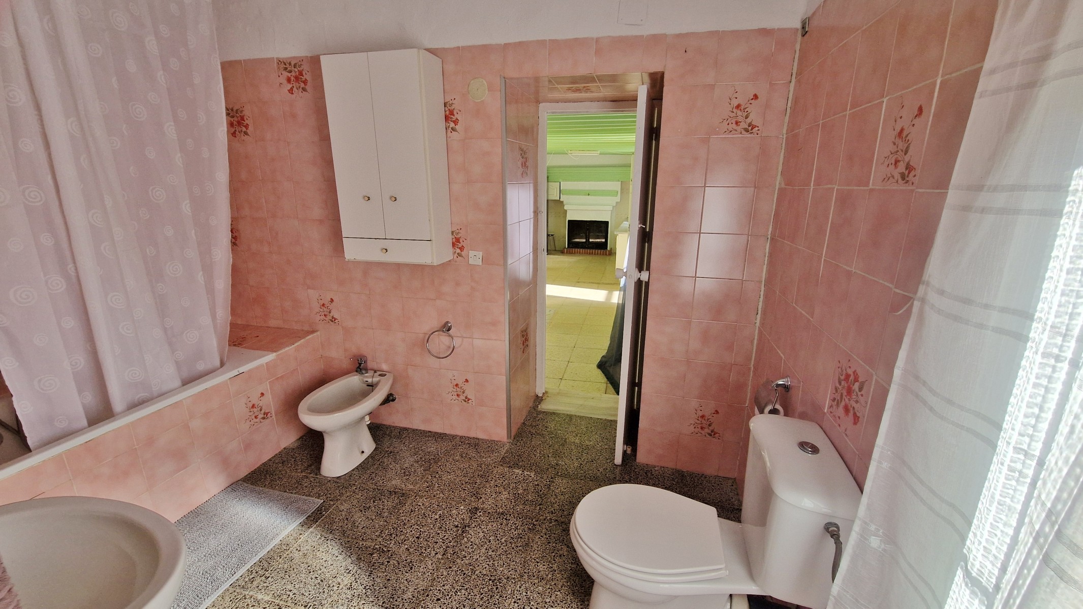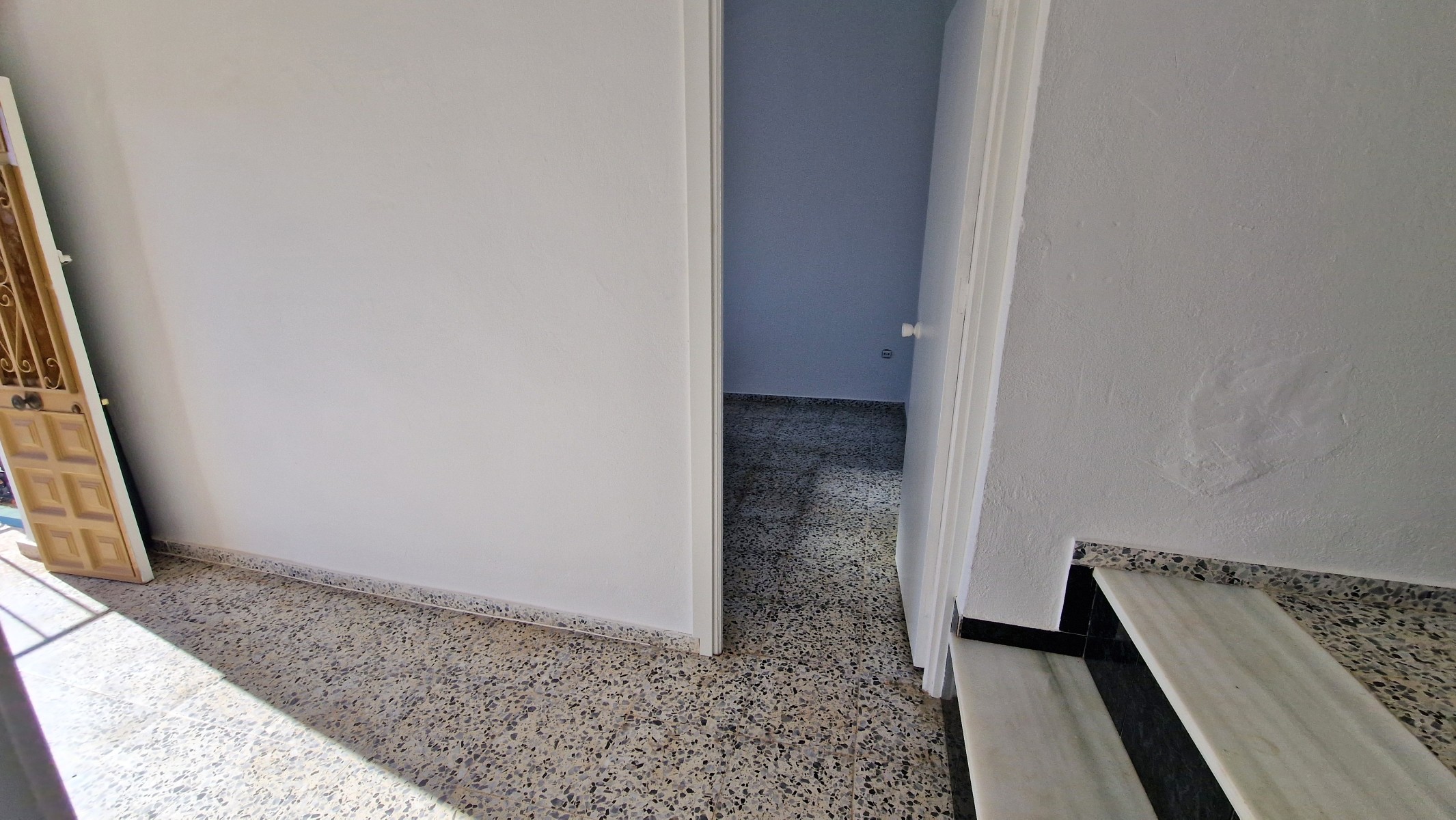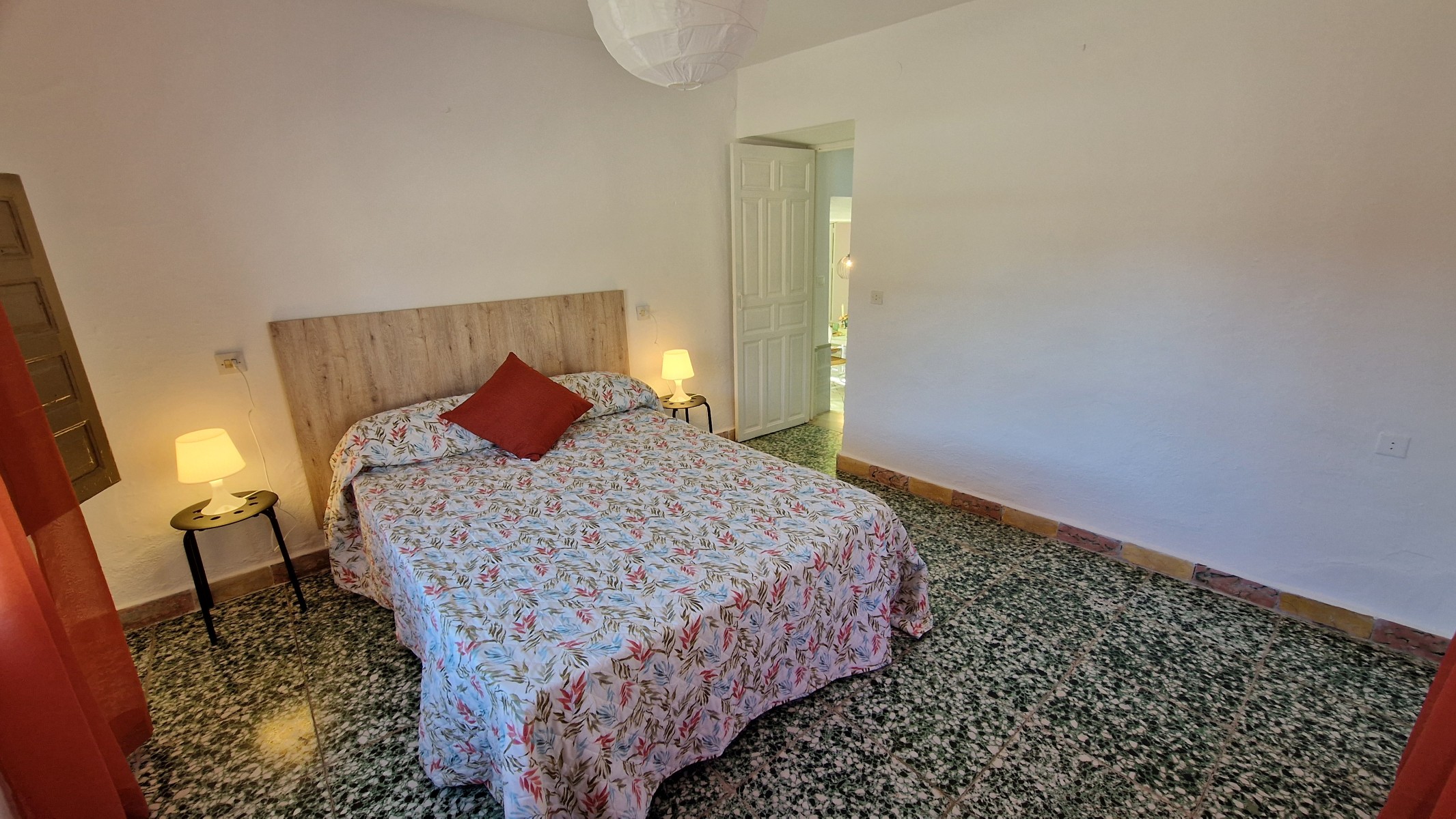The stairs are steep, but well made and whilst it may be possible to eliminate this staircase, using the second staircase (see below), it also is part of the original character of the house. At the top of the stairs, is an upper landing area, which leads right through to the front of the house with double doors to a balony. Upstairs are four very large, light and bright bedrooms, (3 x 4m and 4 x 4m). From the balcony is a wonderful view across the mountains and the valley below, with other cortijos scattered around on the hills around. Upstairs it would not be difficult to sacrifice one bedroom to create two bathrooms (one of which could be an ensuite) although there is space to create small shower rooms in most of the rooms if the plumbing can be designed and distributed correctly.