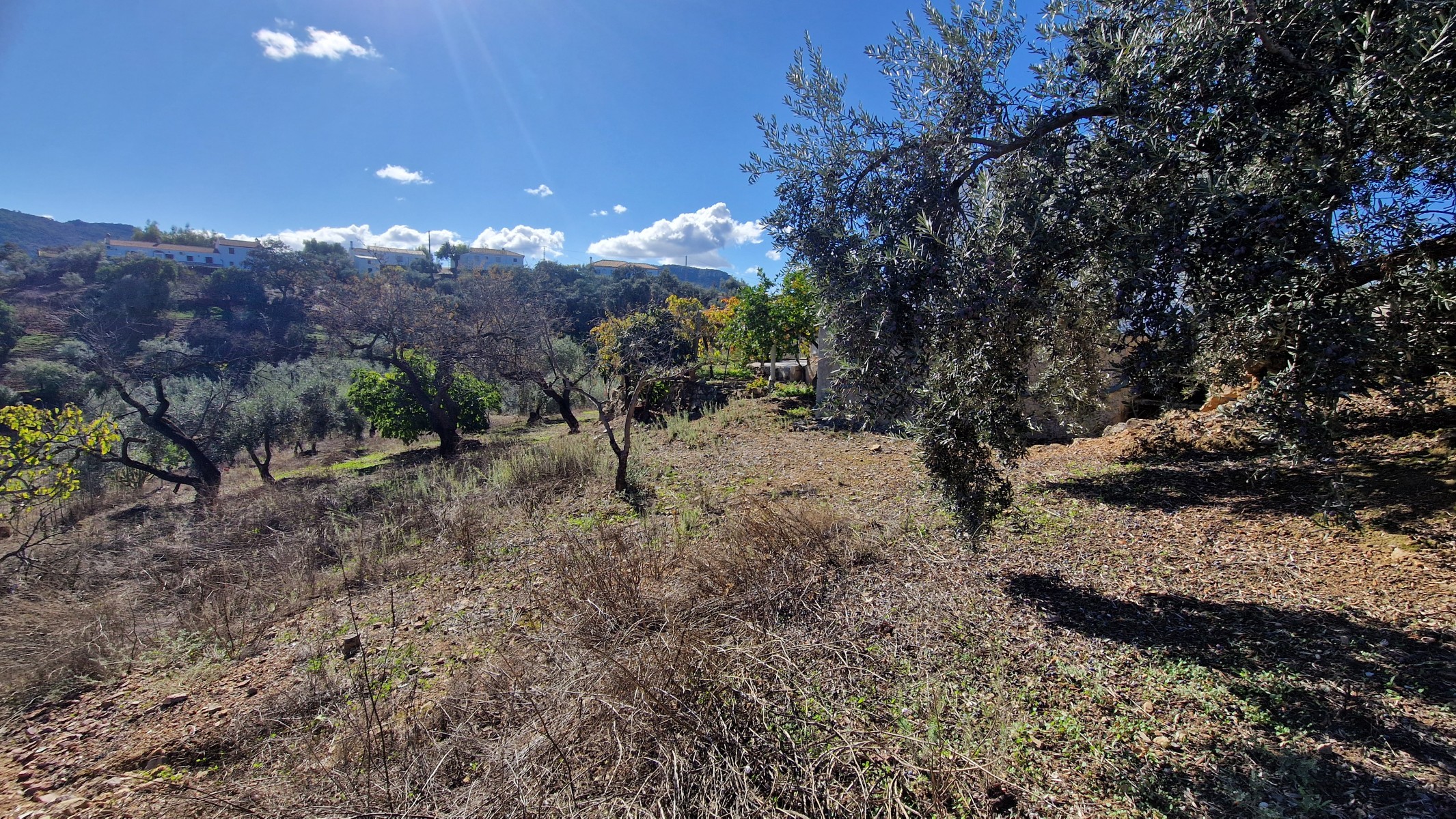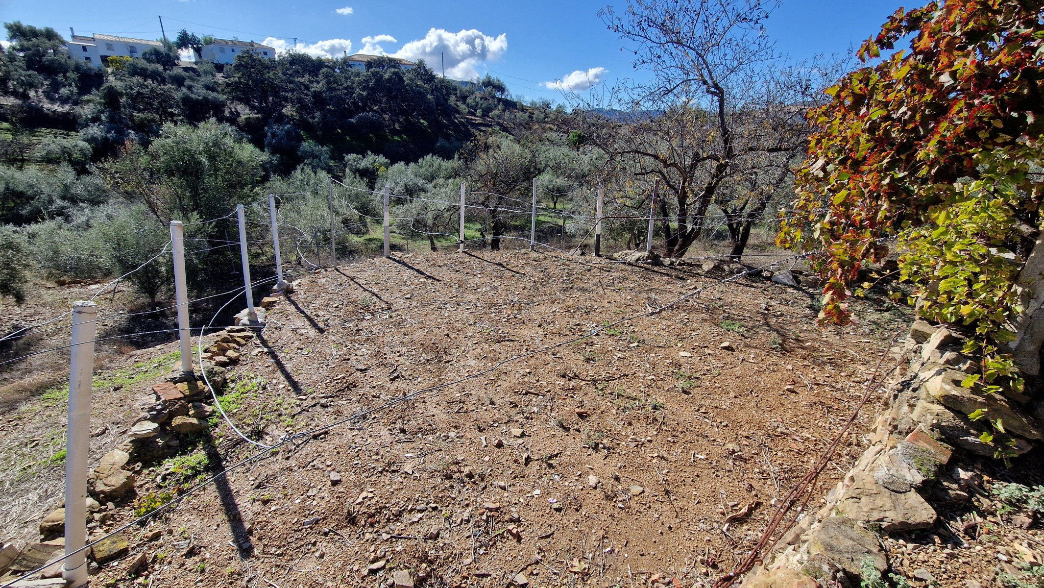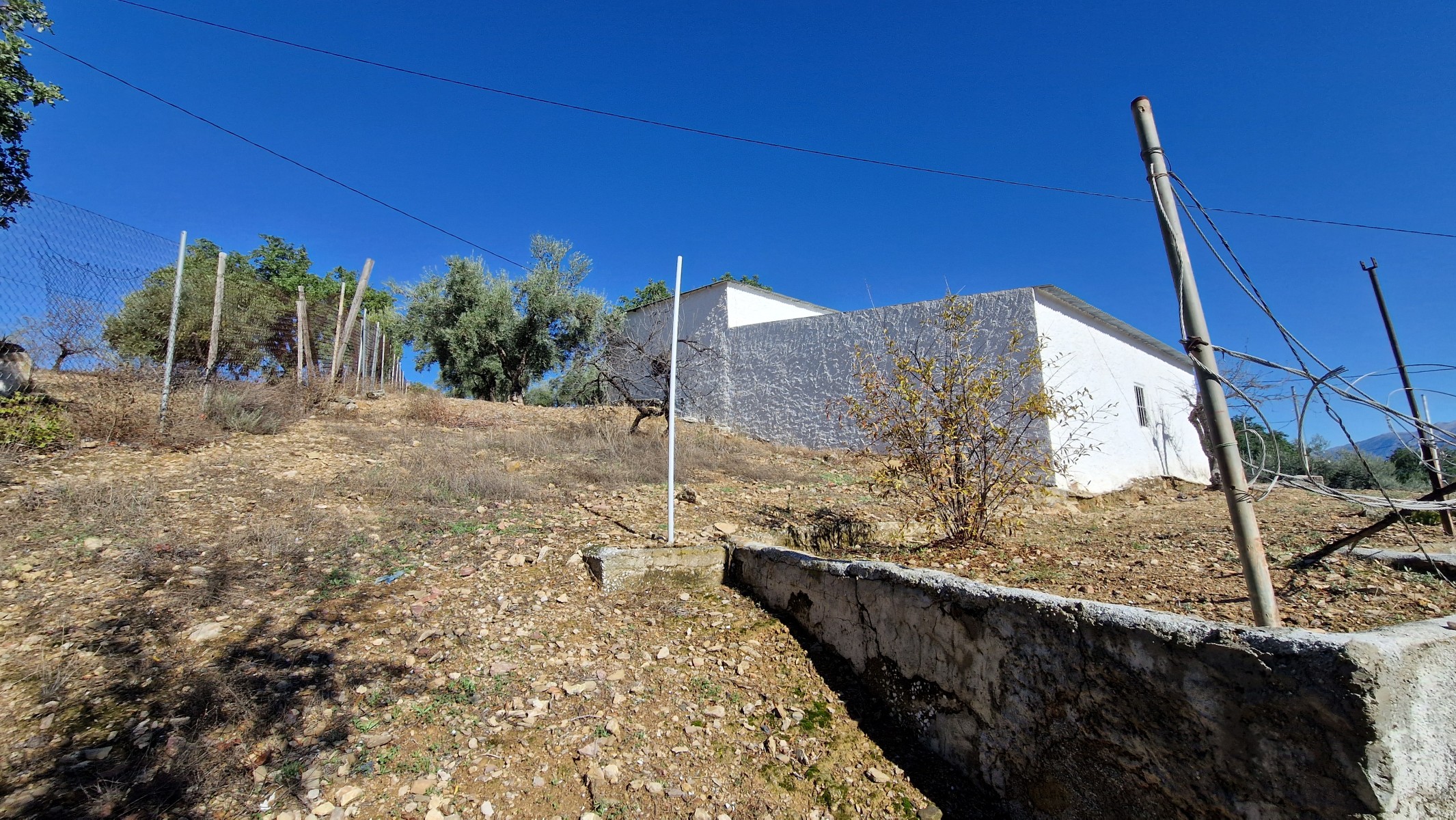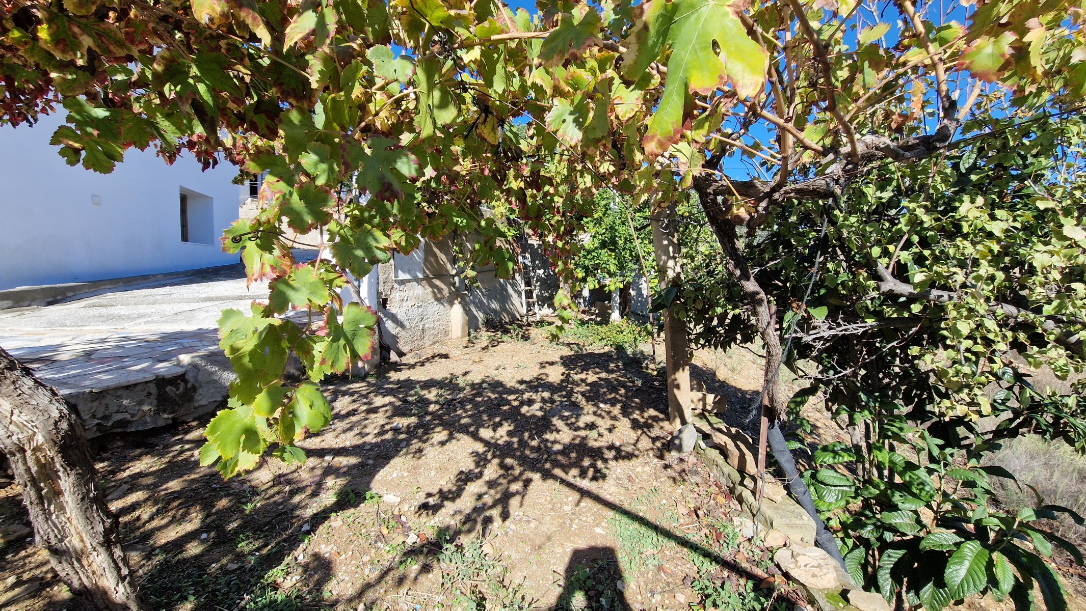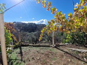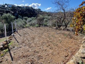 The plot is accessed from a concrete country road and it is walking distance from a lovely little country bar – (the mother makes some lovely food!) The plot consists of 5292m2 of land, all of it useable, planted with olive and almond trees, plus a wide variety of fruit trees including oranges, lemons, carrob, excellent quality fig, and a mini vineyard of grapevines. The soil is extremely fertile, ideal for growing vegetables.