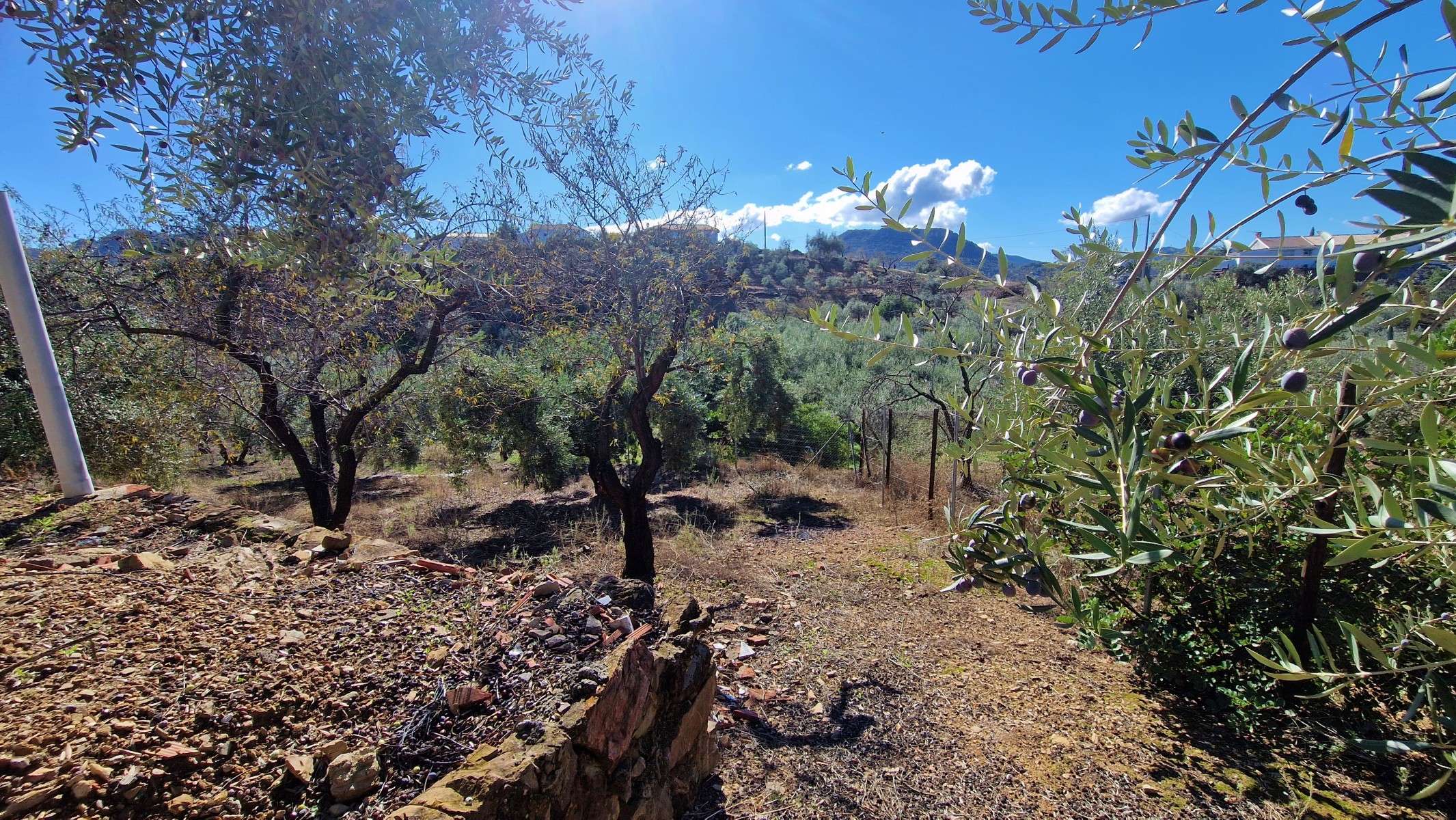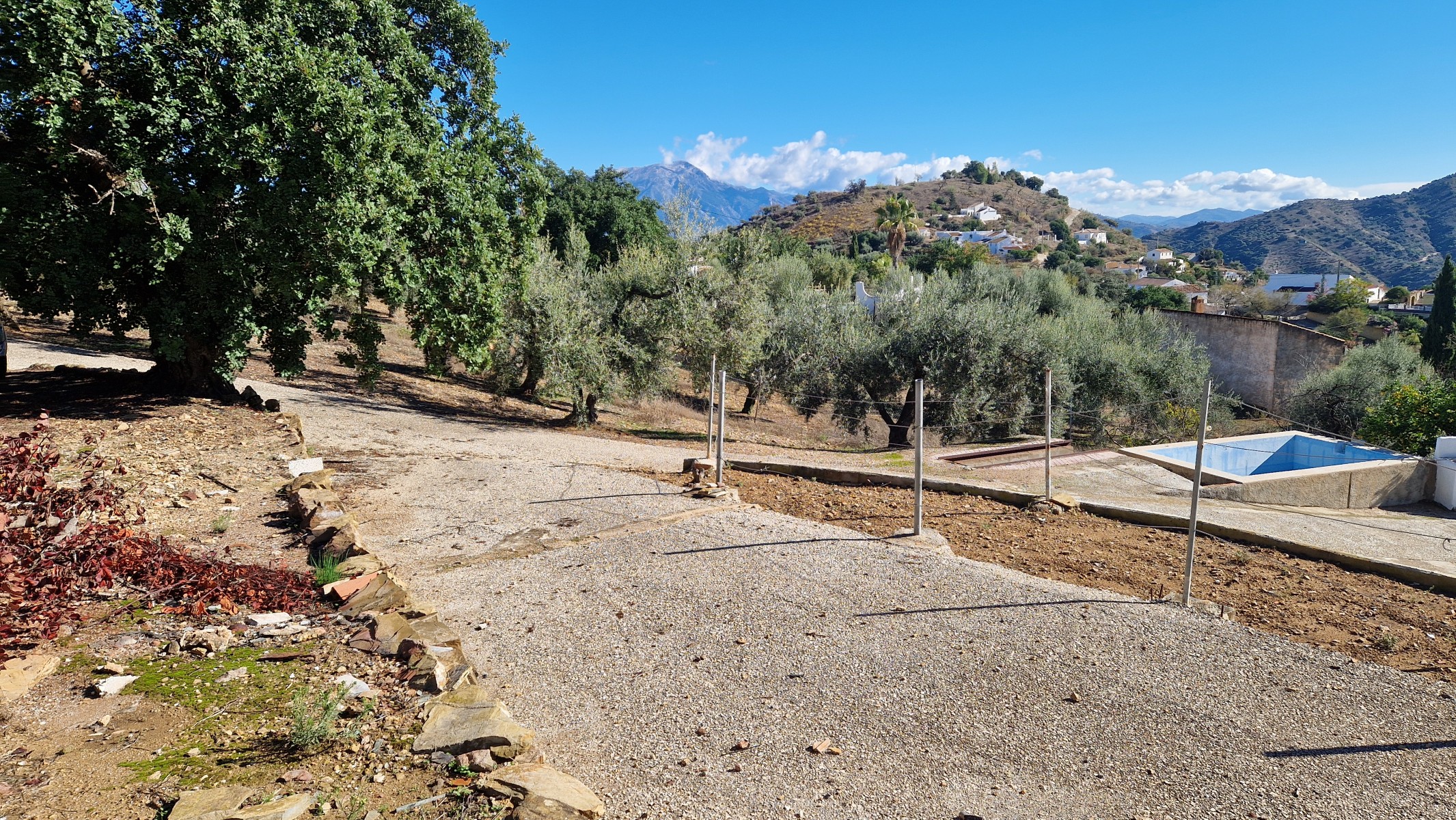 House: currently 6 bedrooms – 1 bathroom – extra annexe to restore or add to main house – small in-ground pool – 5292m2 land – stunning views – olives and fruit trees – very fertile land – no dirt track – peaceful, beautiful location