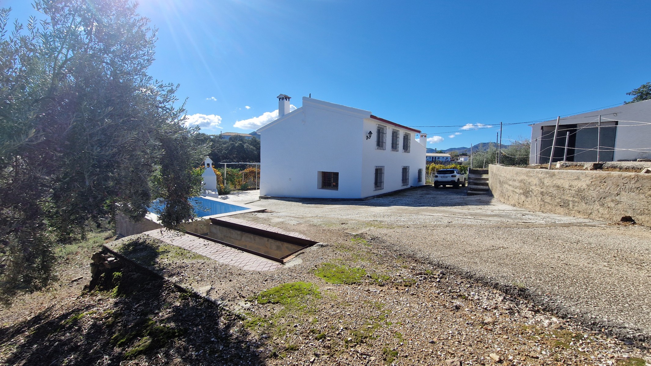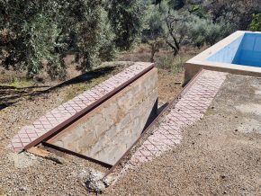 With the plot are the main house (158m2 on two floors), a spalsh pool (internal dimensions 2m x 4m), barbecue area, and two large barns making up around 100m2. By the splash pool is a car inspection pit, but this could easily be eliminated if not required.