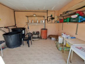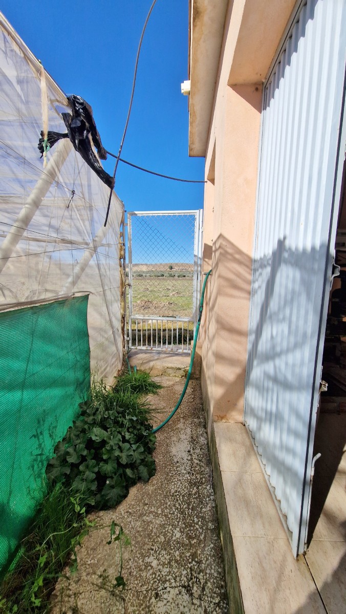 A passage to the side of the house leads to the rear, where there is an additional store room (5 x 4m) where all the irrigation equipment is kept for the production of crops in the greenhouse area.