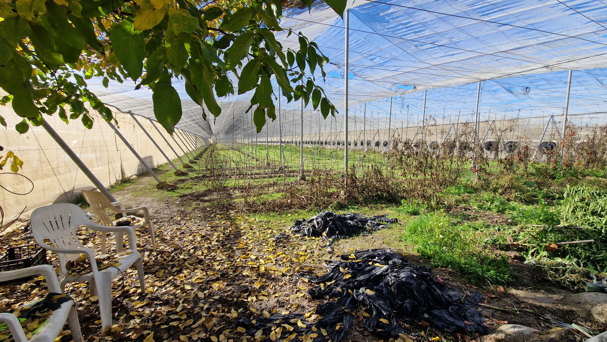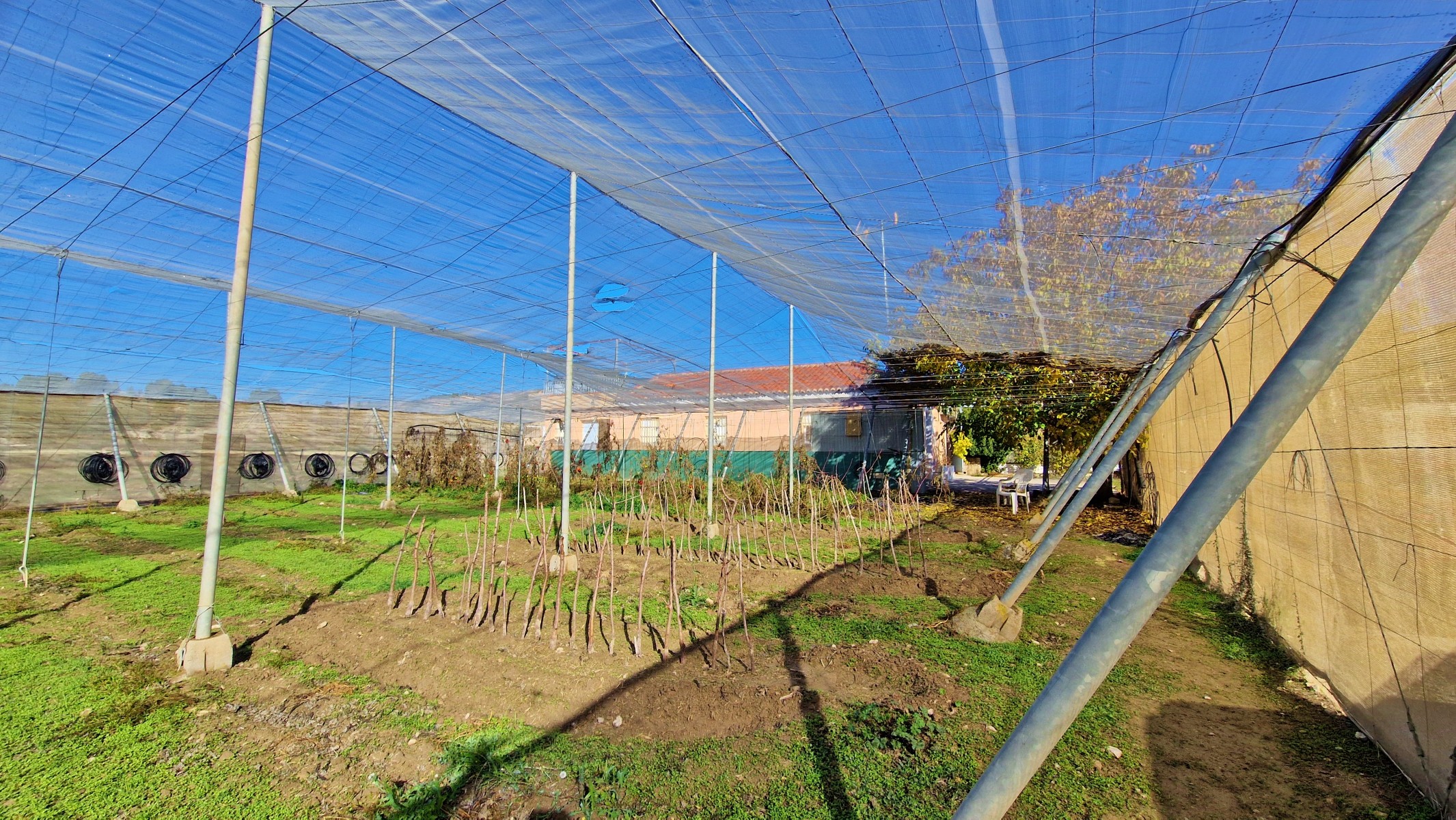 The plot, consisting of 332m2 of totally flat land, is highly fertile, and is hence covered by a net greenhouse material, to grow hot-house crops such as tomatoes, green peppers, or whatever one wishes to grow. The greenhouse can be rented to local farmers or could be partly or entirely removed, depending on what the new owner wishes. The land will grow almost anything suitable to this climate and can offer an income to any new owner. Apart from the greenhouse area, there is a garden to the front of the house, which is perfect for recreational use.