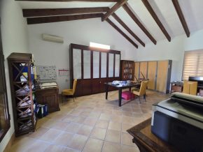 24,000m2 of completely flat land – 1056m2 buildings – main 3 bed house – separate casita – 5 stables for horses – open paddock – covered paddock – storerooms and outbuildings – just 3 Kms from the village