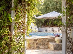 Complementing the main home is a fully independent guest suite with its own private entrance. This self-contained accommodation includes two additional bedrooms, a second bathroom, and a dedicated kitchen, offering guests direct access to the pool area and complete autonomy. Outside, the property transforms into a true Mediterranean oasis set upon a generous 3,439m2 plot. Surrounded by nature and ancient olive trees, the grounds ensure total privacy and a stunning backdrop of mountain vistas. Residents can enjoy an array of outdoor amenities, including a private swimming pool, a separate plunge pool for refreshing dips, a dedicated outdoor kitchen for al-fresco dining, and a cozy fire pit area for evenings under the stars.