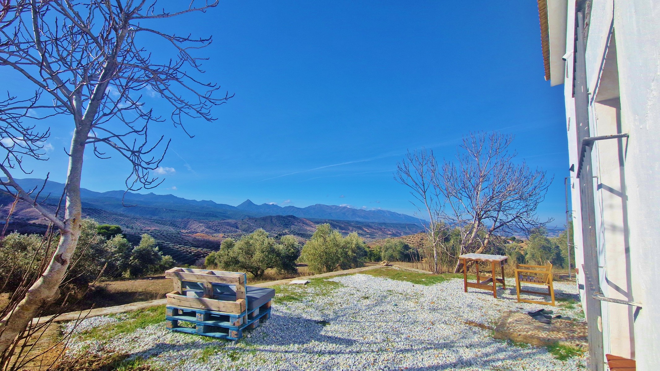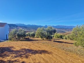 A beautiful, rustic style cortijo (145.6m2) on two floors set in a fabulous plot of land, very useable and not steep, with magnificent, breathtaking, south-facing mountain and country views.