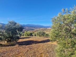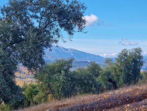 3 to 4 bedrooms – 1 bathroom (could easily be 2) – rustic sytle – on 24,245m2 of very useable land – mature olive trees – stunning panoramic views – easy access – AFO processing – space for a pool