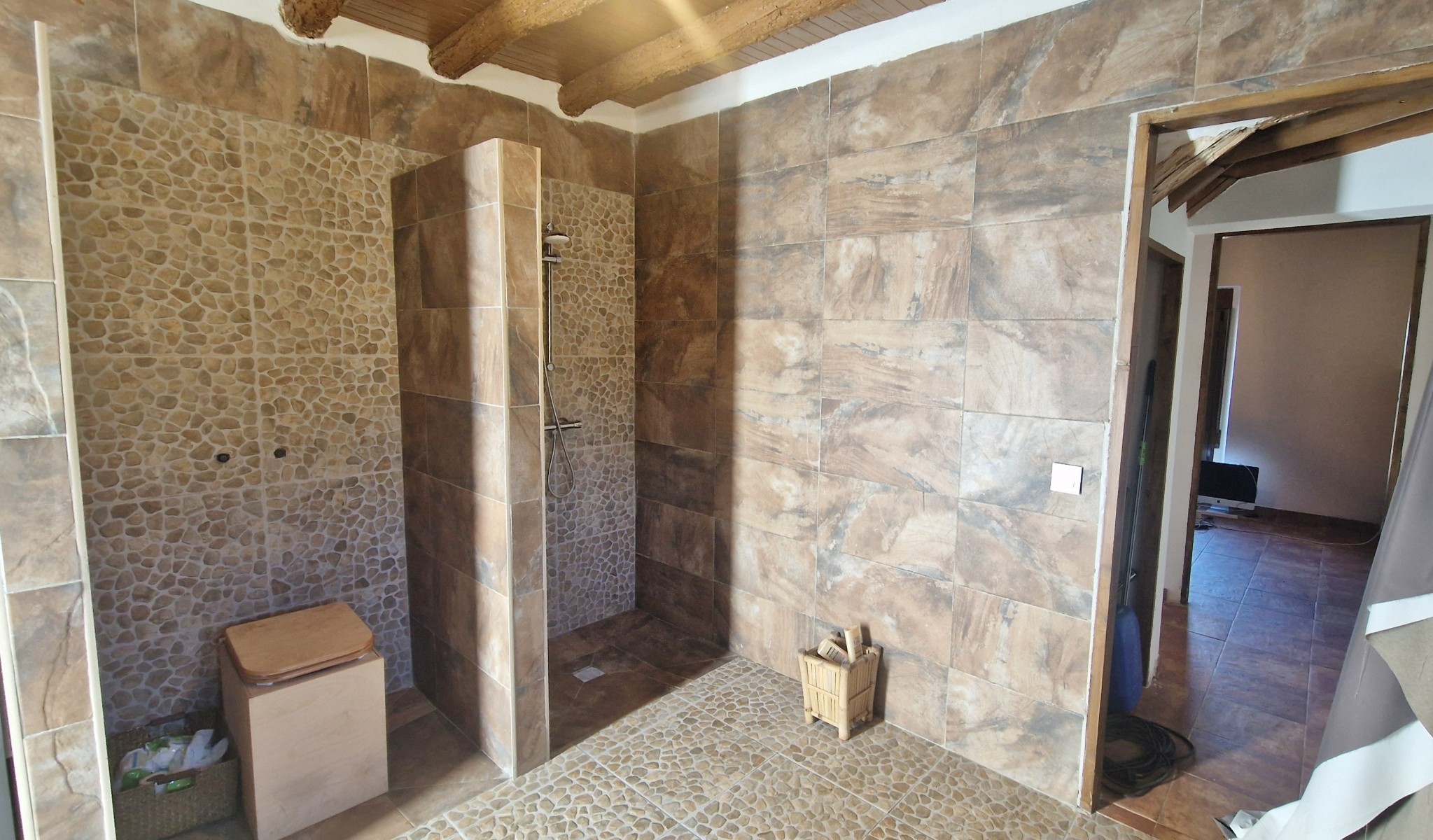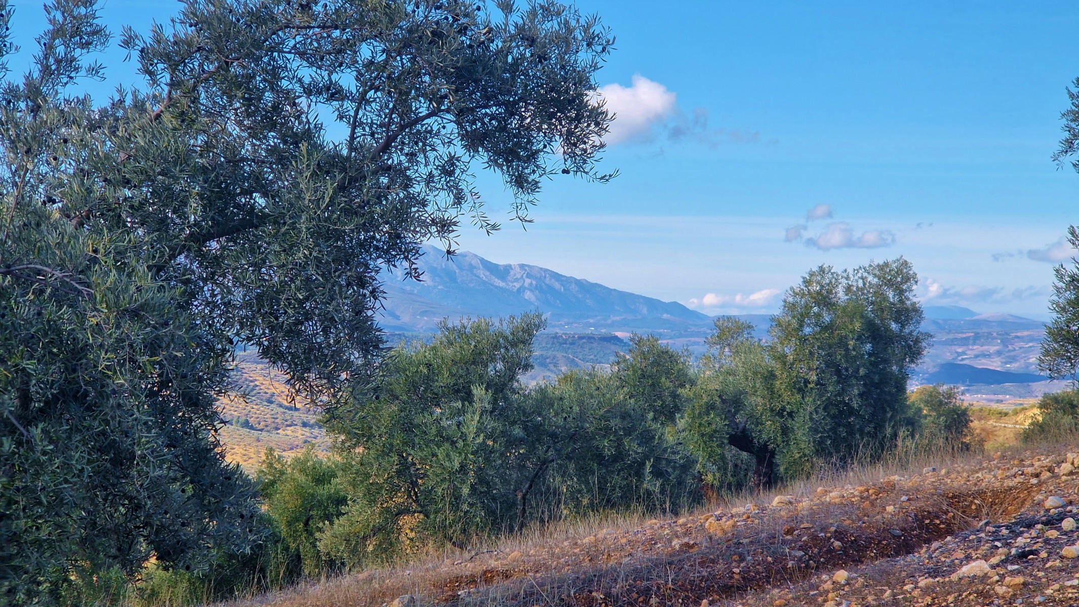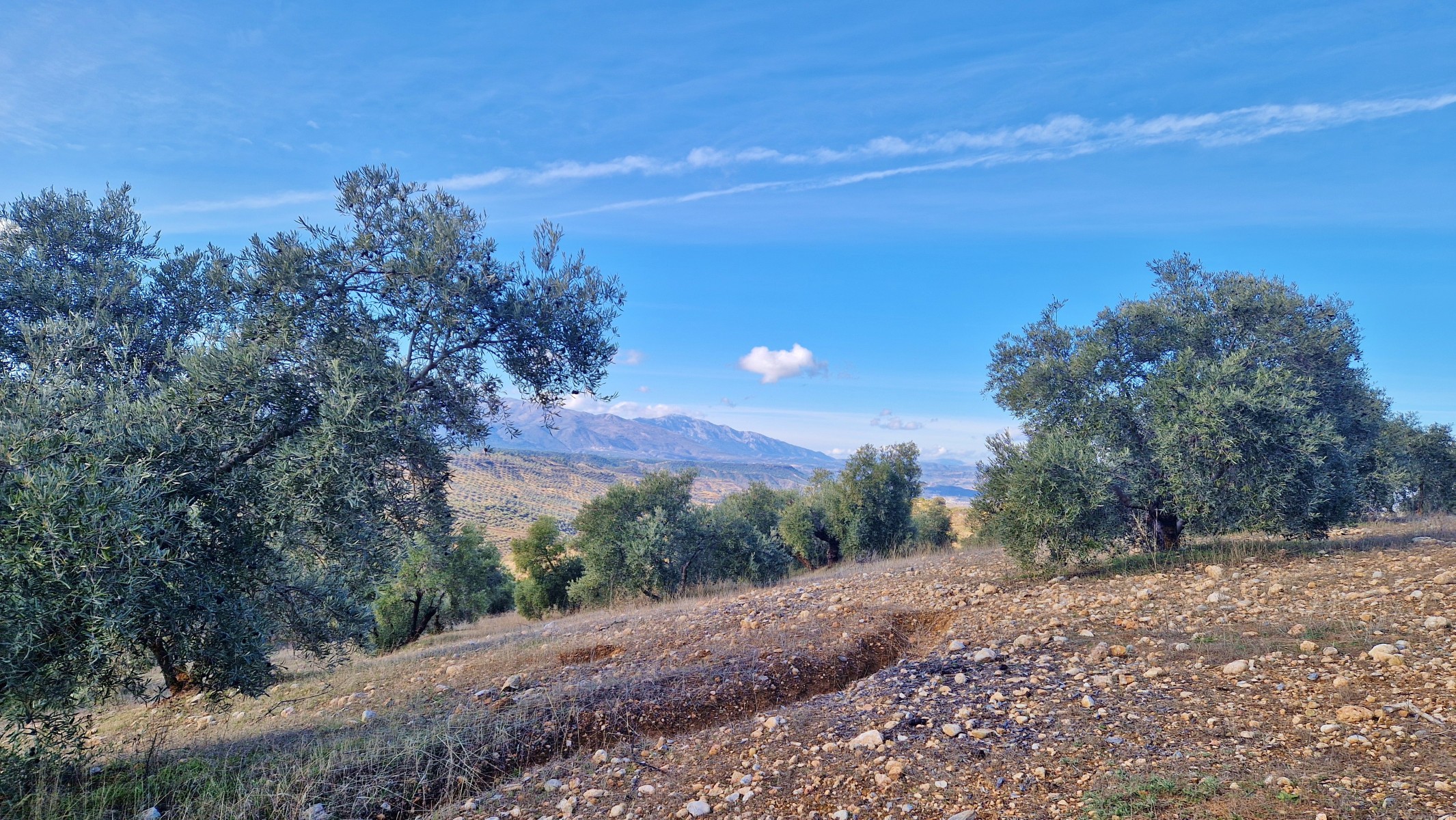 Outside, the 24,245m2 of land is all very useable, with flat and only gently sloping areas, currently planted with mature olive trees that can bring in a useful extra income (around 3000 Euros per year, depending on the year). It is particularly special because it offers impressive, panoramic views of the beautiful countryside and the mountain ranges to the South, views one can never tire of contemplating. It would be ideal for keeping animals and growing a few vegetables and fruit trees. It would be easy to install a rain water collection tank, an easy and efficient way of collecting water for irrigation.
