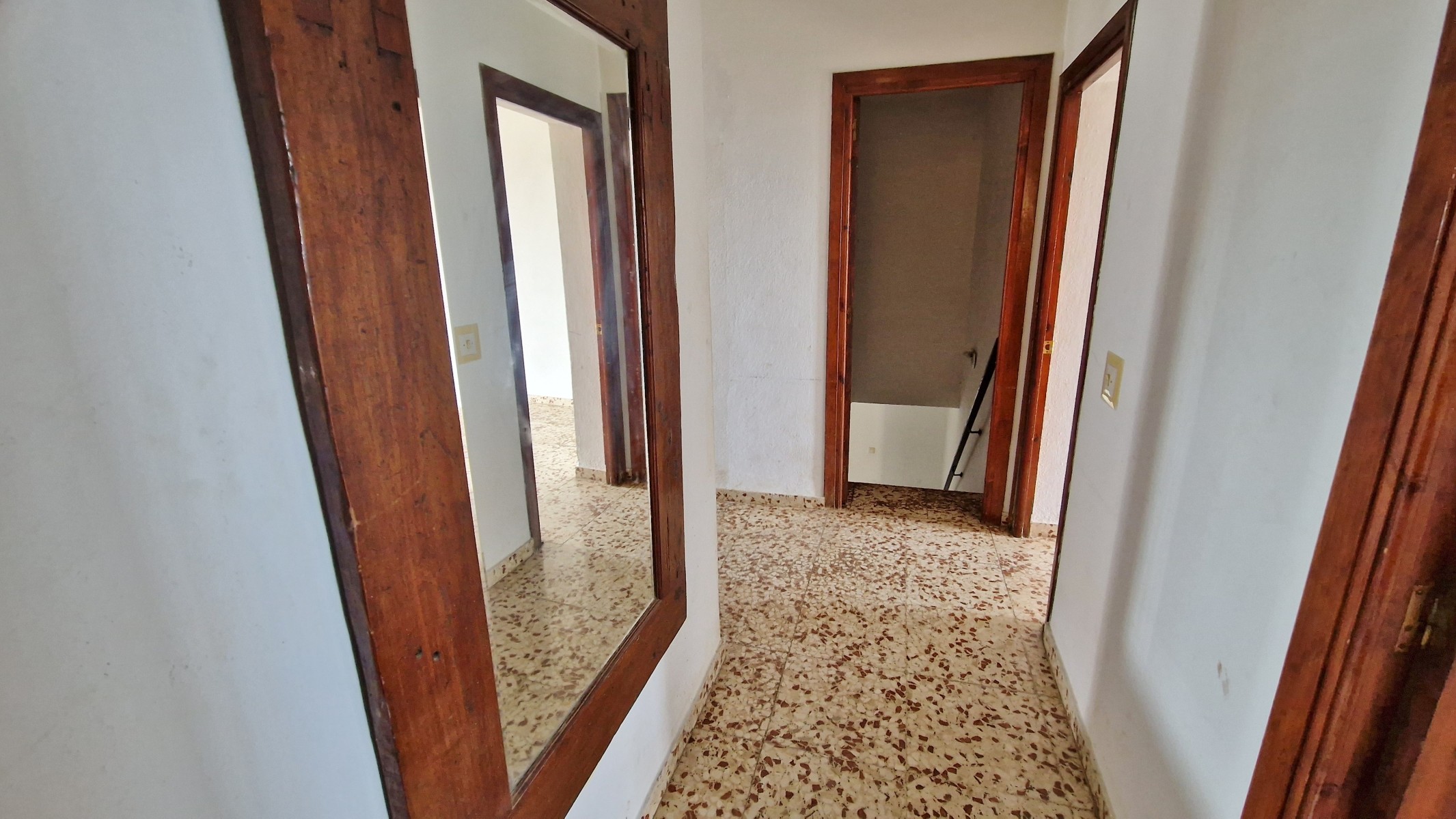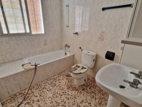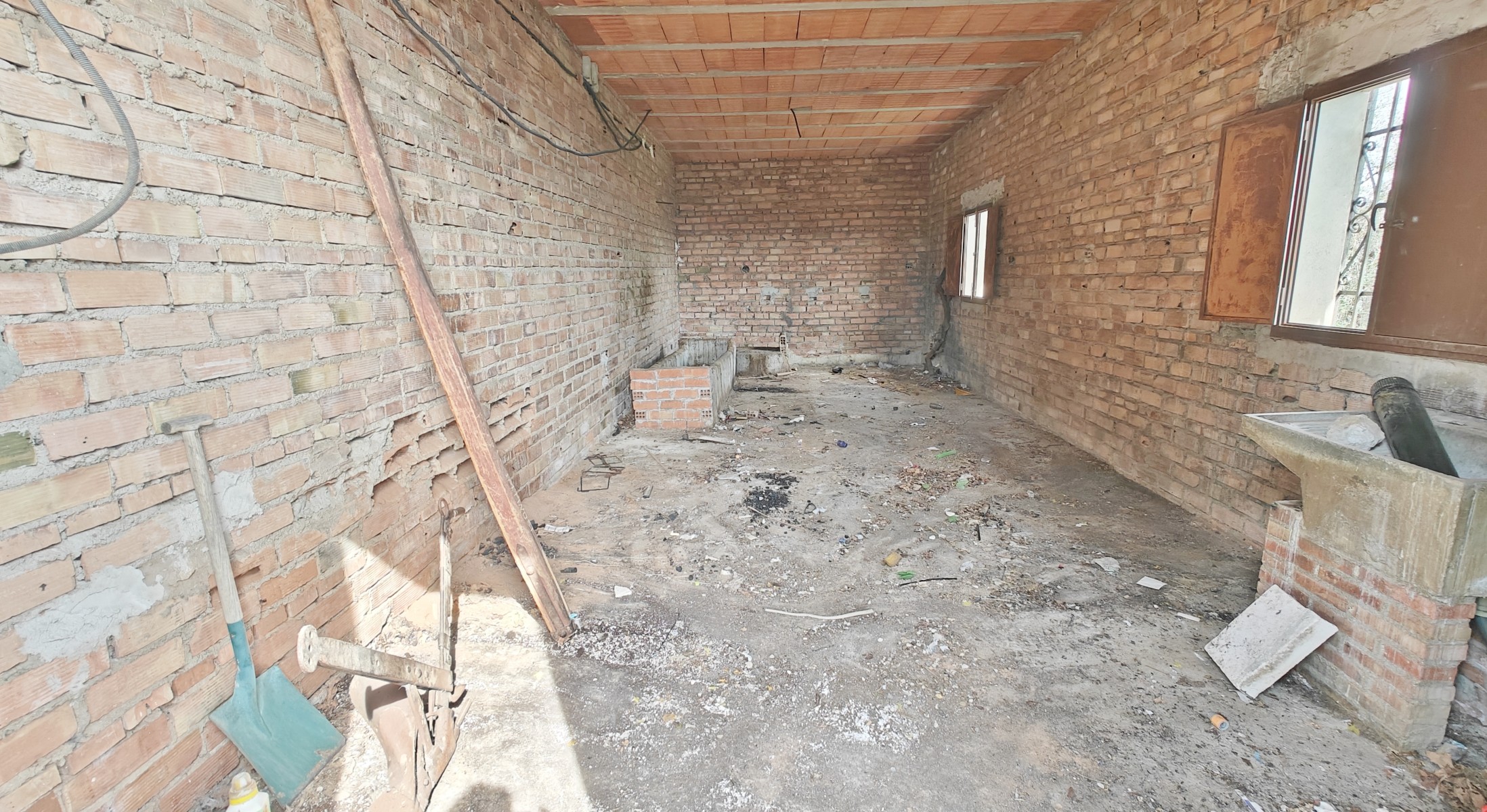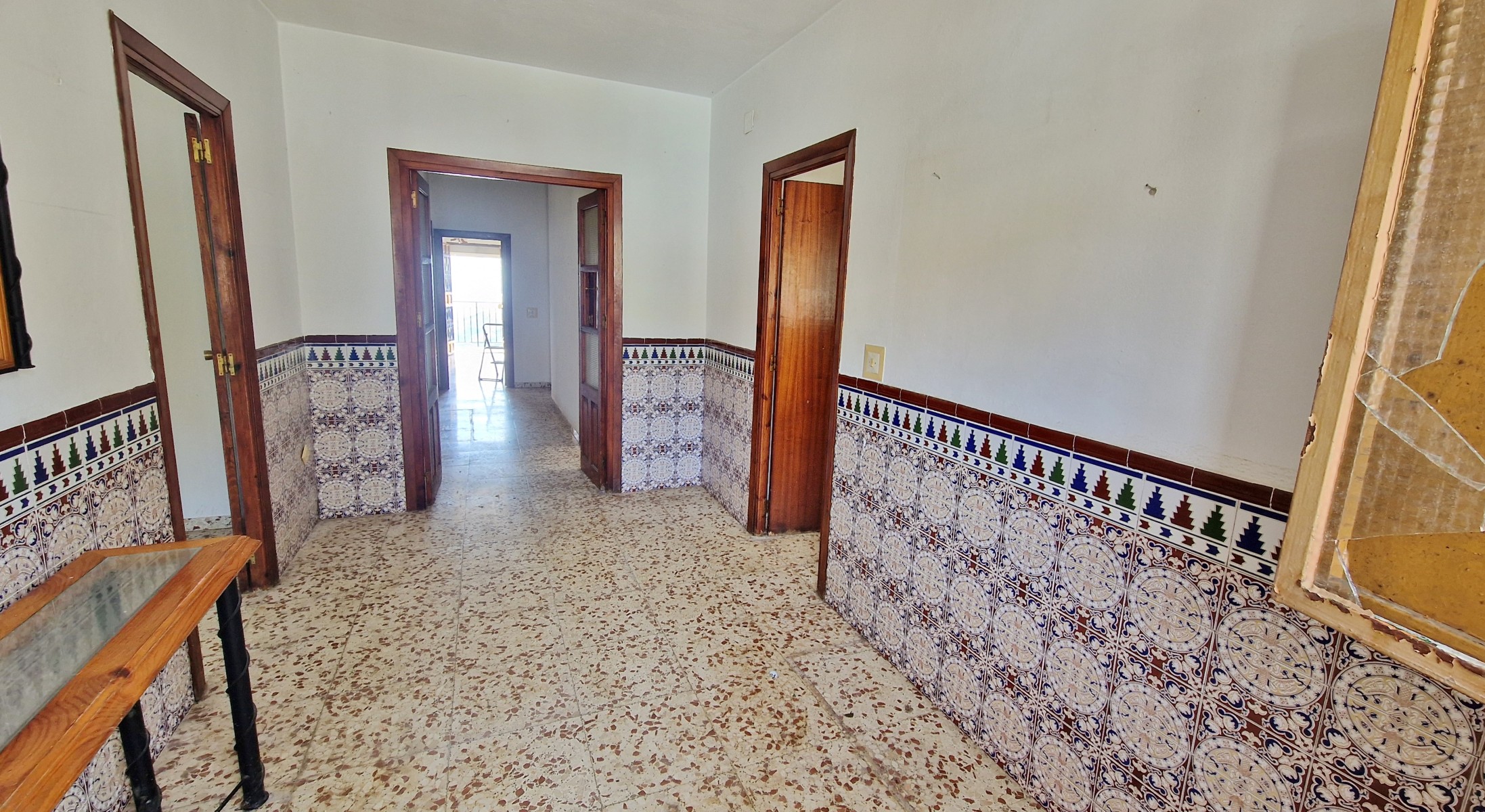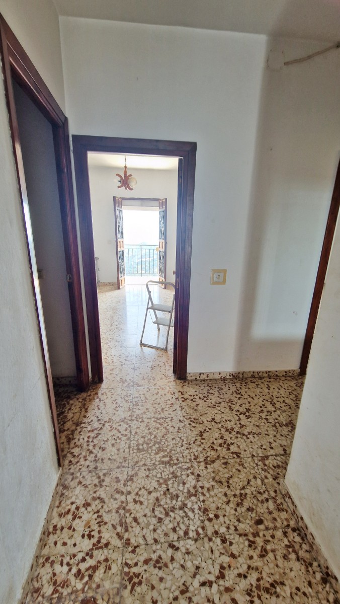 The front covered terrace (around 2 x 12m) leads off the road and into a hallway.  The house is distributed into 4 very large bedrooms, a living room and a large kitchen, plus one bathroom currently in need of renewal.  The internal walls are all partition walls meaning that the layout can easily be changed if required.  At the far end a second living room leads out onto a corridor balcony for enjoying the fabulous views to the coast and the sea, the mountains and the beautiful countryside.