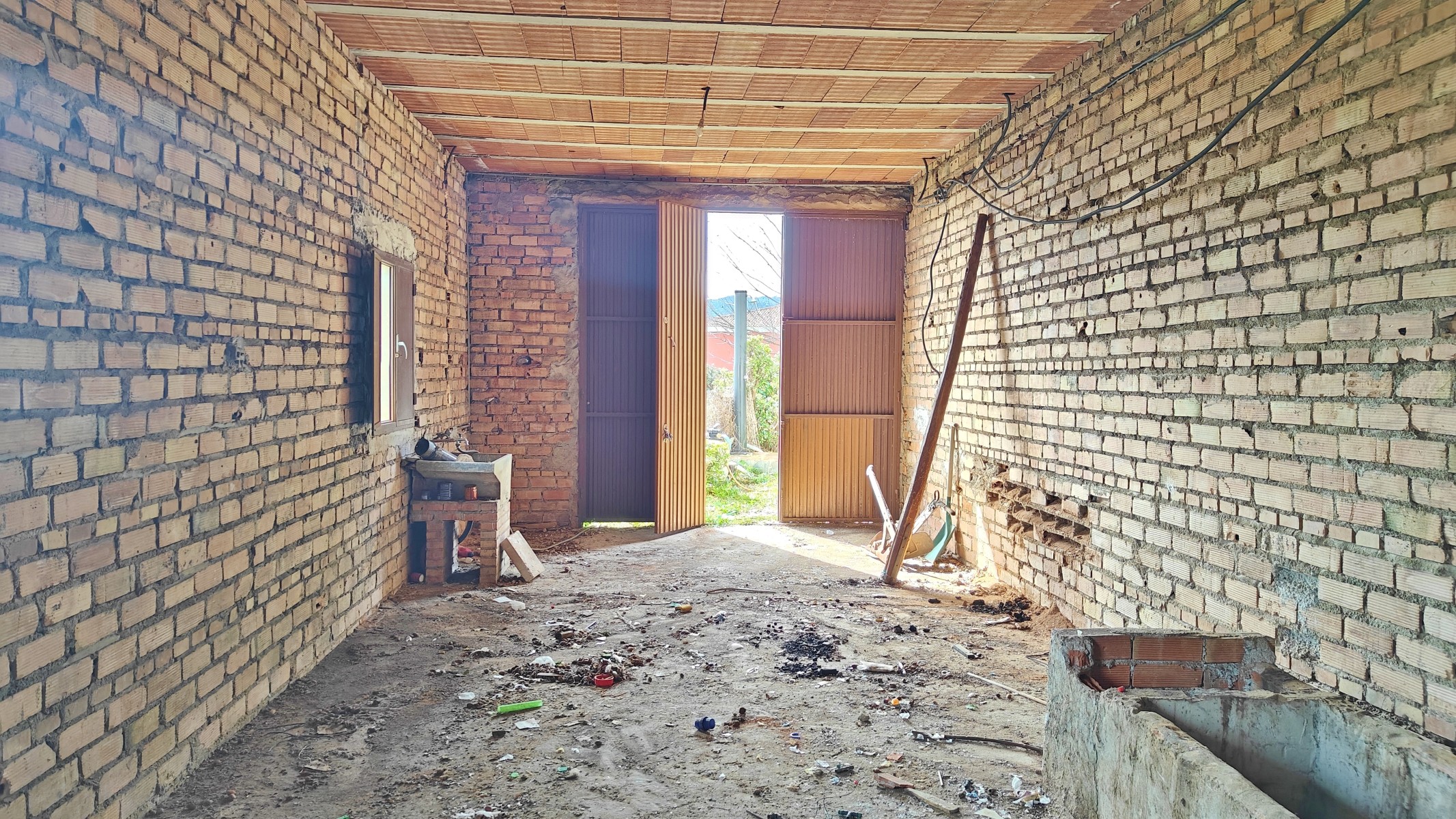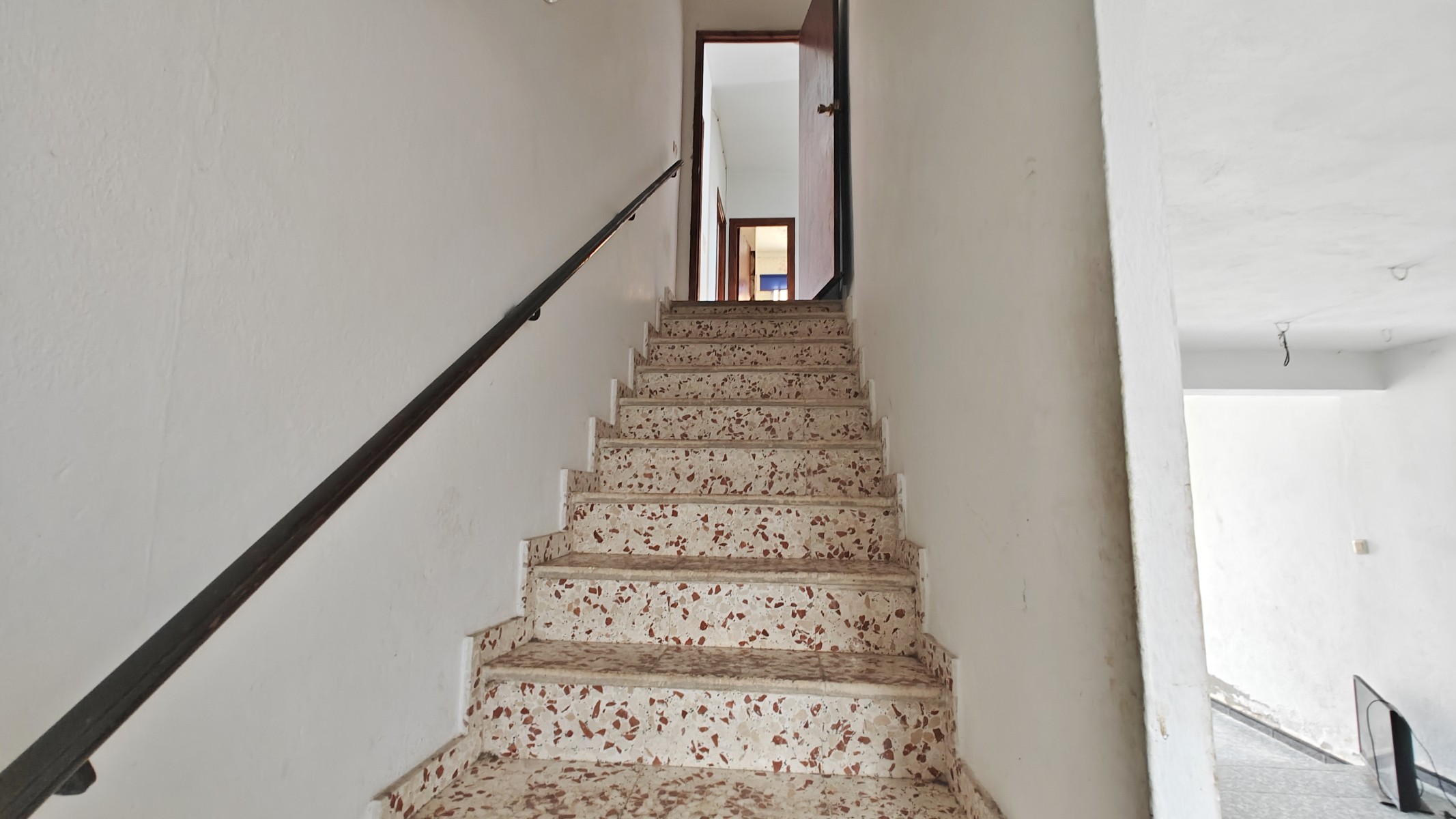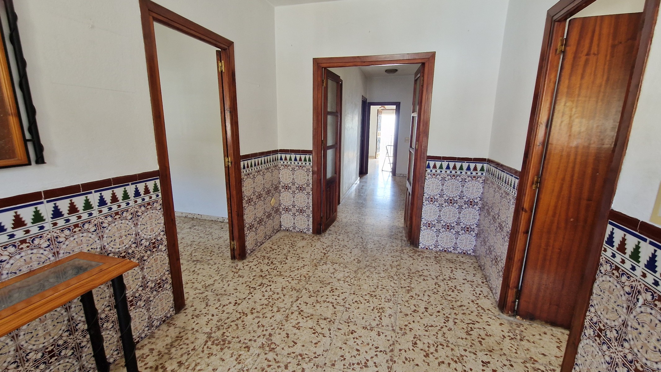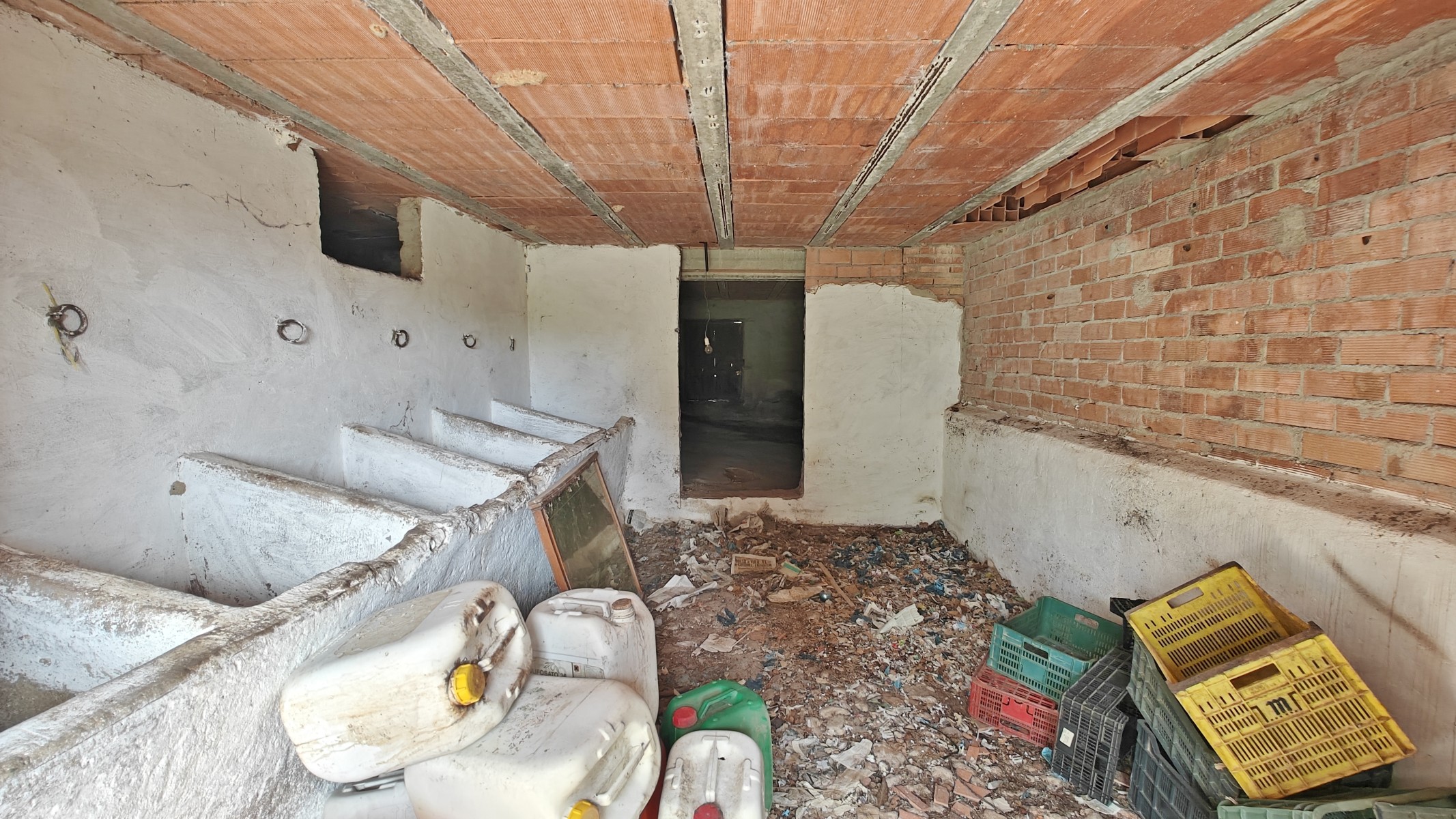 The front covered terrace (around 2 x 12m) leads off the road and into a hallway.  The house is distributed into 4 very large bedrooms, a living room and a large kitchen, plus one bathroom currently in need of renewal.  The internal walls are all partition walls meaning that the layout can easily be changed if required.  At the far end a second living room leads out onto a corridor balcony for enjoying the fabulous views to the coast and the sea, the mountains and the beautiful countryside.