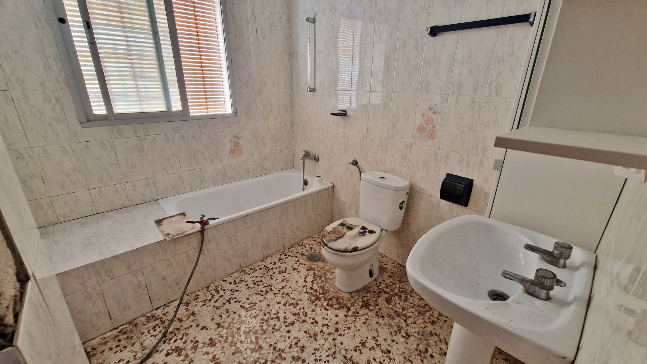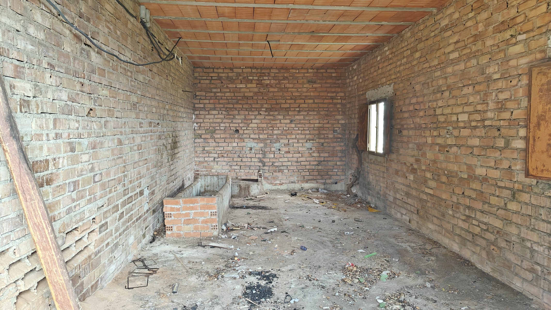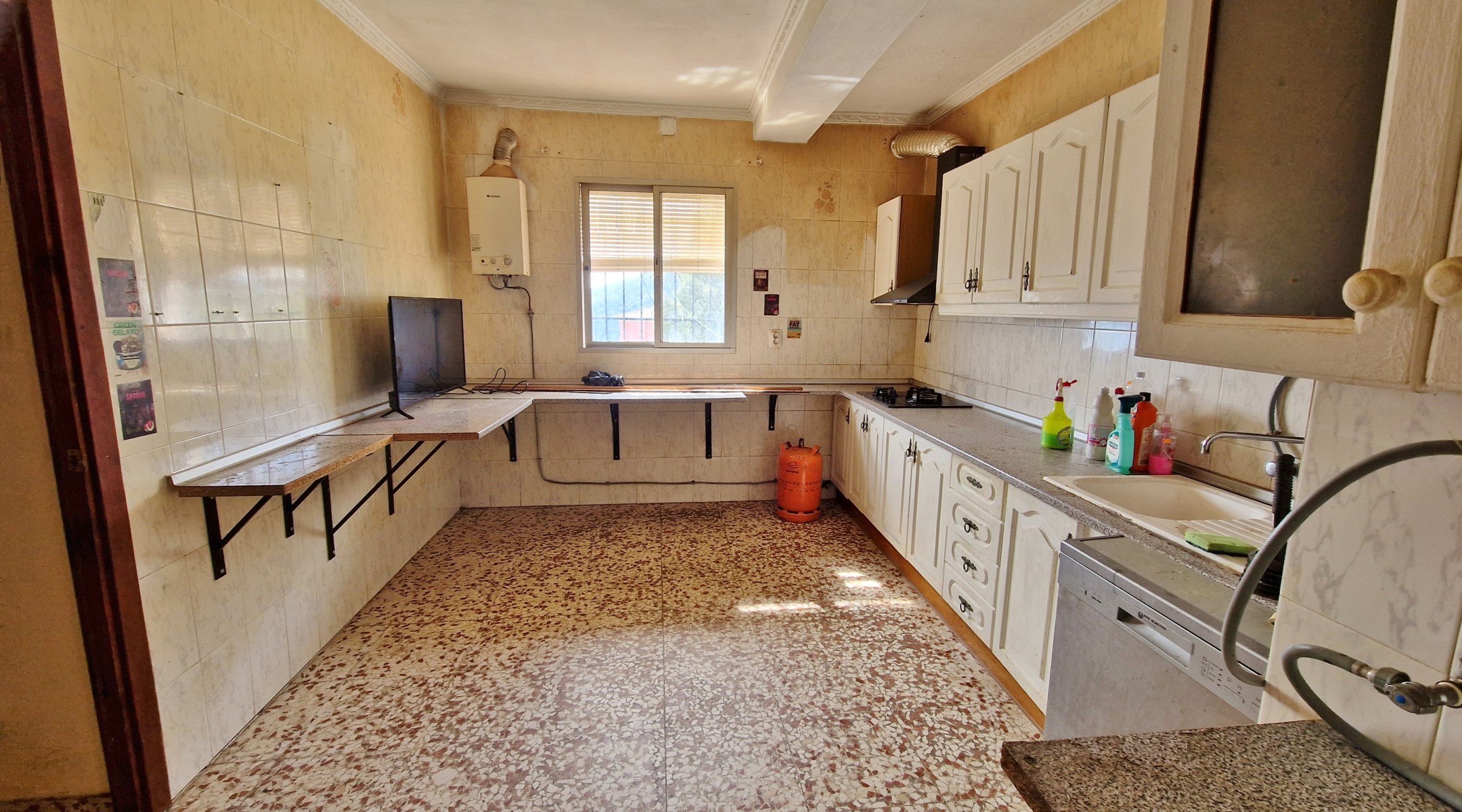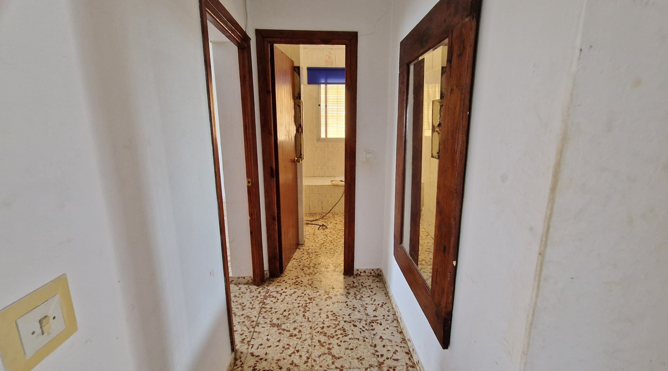 The front covered terrace (around 2 x 12m) leads off the road and into a hallway.  The house is distributed into 4 very large bedrooms, a living room and a large kitchen, plus one bathroom currently in need of renewal.  The internal walls are all partition walls meaning that the layout can easily be changed if required.  At the far end a second living room leads out onto a corridor balcony for enjoying the fabulous views to the coast and the sea, the mountains and the beautiful countryside.