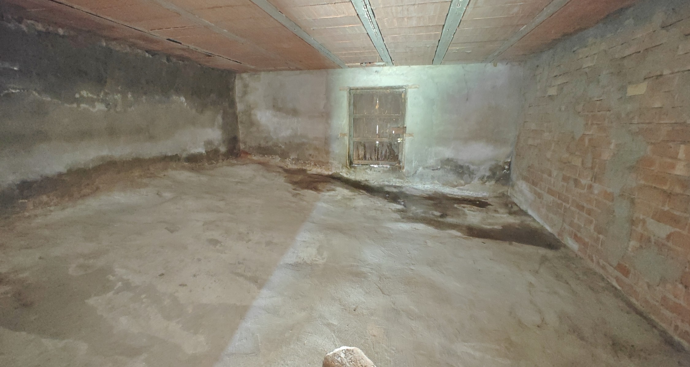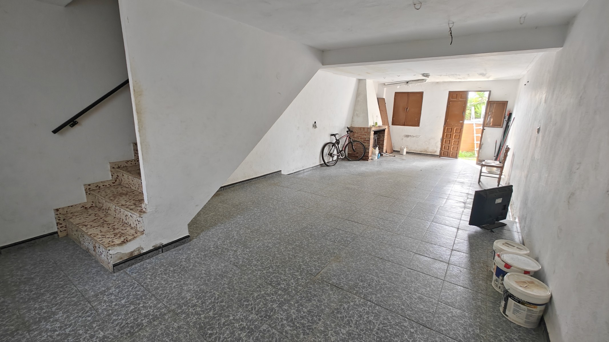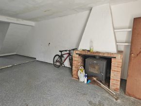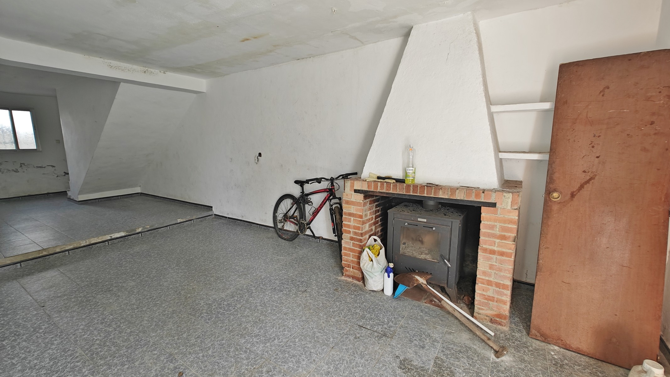 Stairs from this level lead down to a lower area of around 12 x 4m, with a large fireplace and a door out to the garden.  This whole level could be developed as a separate living unit, additional bedrooms, or a workshop.  Next to it is the large garage (48m2) and there is an additional store room used previously as stables for donkeys.