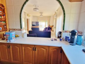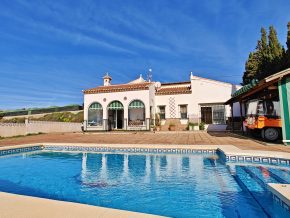 Located just 1.5Kms from the lovely village of Algarrobo and under 10 minutes from the coast, Casa El Ancladero is a spacious and unusual property, offering potential not only as a family home or for rental to tourism, but also as a lifestyle, as the lovely, flat grounds, with many trees and beautiful sea views, contain two spacious wooden chalets, registered as guest accommodation, with their own covered terrace areas, and set conveniently away from the main house. This gives potential to let these units to guests, simply to offer accommodation, or for activity holidays such as yoga, recuperation from illness, teaching holidays, etc. The chalets need some repairs and updating.