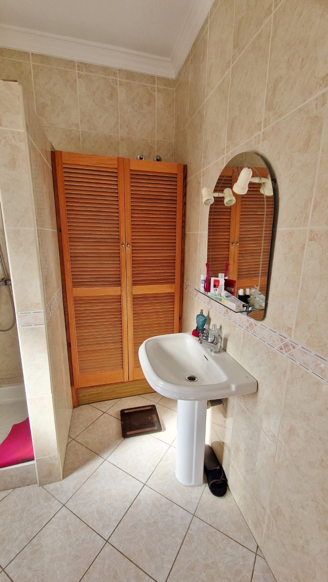 The house is laid out around the central patio, with a large living room (8 x 4.5m) with corner fireplace and plenty of windows, a spacious, fully fitted kitchen (4 x 3m) with an arched opening to the living room, and a useful utility room (3 x 2.5m). There are two good sized guest bedrooms (5 x 3m and 4 x 3m), a guest bathroom (3 x 2m), and a master bedroom (5 x 4m) with an ensuite bathroom (2 x 2m), plus a separate WC (2 x 1m). Beyond the utility room, to the rear side, are two additional rooms, currently used for storage. The first, (around 6 x 3m) is made up mainly of glass panelling, with large double entrance doors, and would make a perfect rear conservatory or even an ‘orangery’. Beyond is the large second store room (also around 6 x 3m), which also has access to an underground water deposit for extra water. This room could be used as a workshop, studio or even an indoor yoga area and gym.