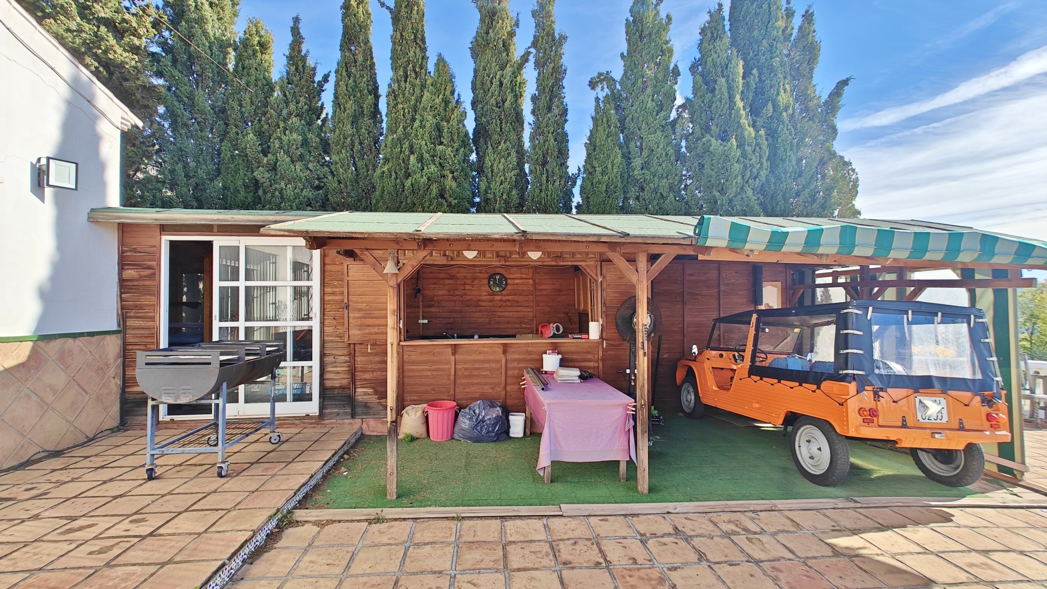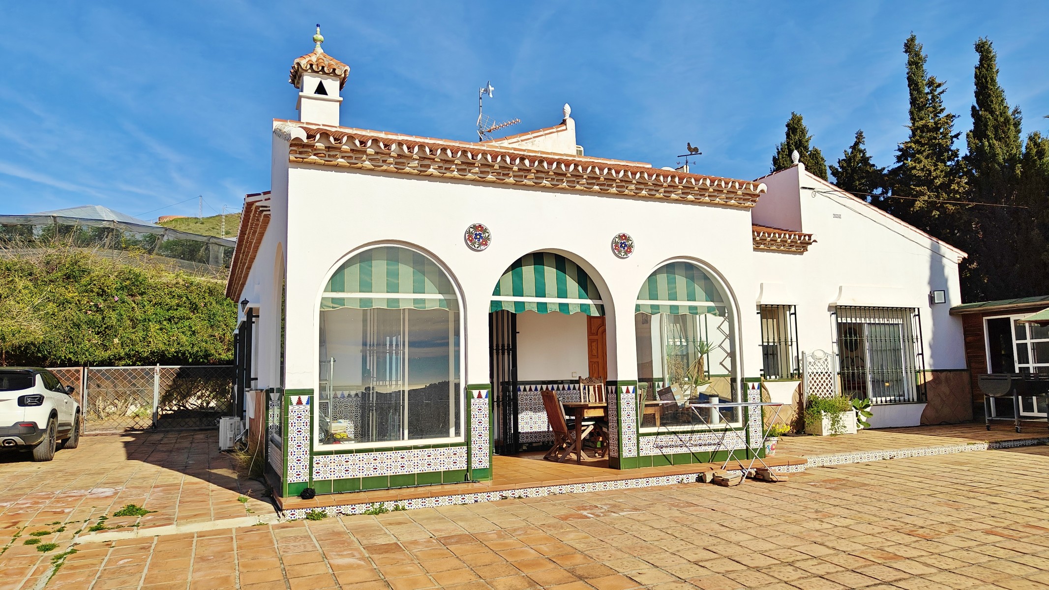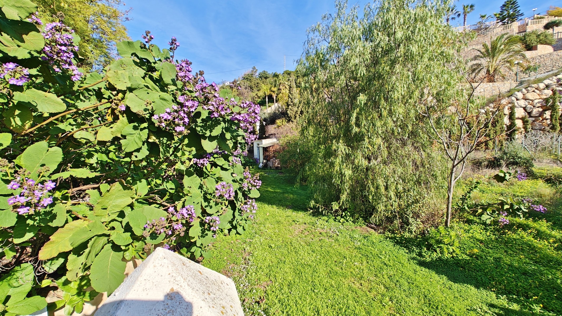 Located just 1.5Kms from the lovely village of Algarrobo and under 10 minutes from the coast, Casa El Ancladero is a spacious and unusual property, offering potential not only as a family home or for rental to tourism, but also as a lifestyle, as the lovely, flat grounds, with many trees and beautiful sea views, contain two spacious wooden chalets, registered as guest accommodation, with their own covered terrace areas, and set conveniently away from the main house. This gives potential to let these units to guests, simply to offer accommodation, or for activity holidays such as yoga, recuperation from illness, teaching holidays, etc. The chalets need some repairs and updating.