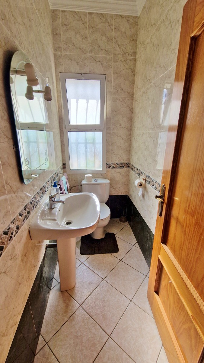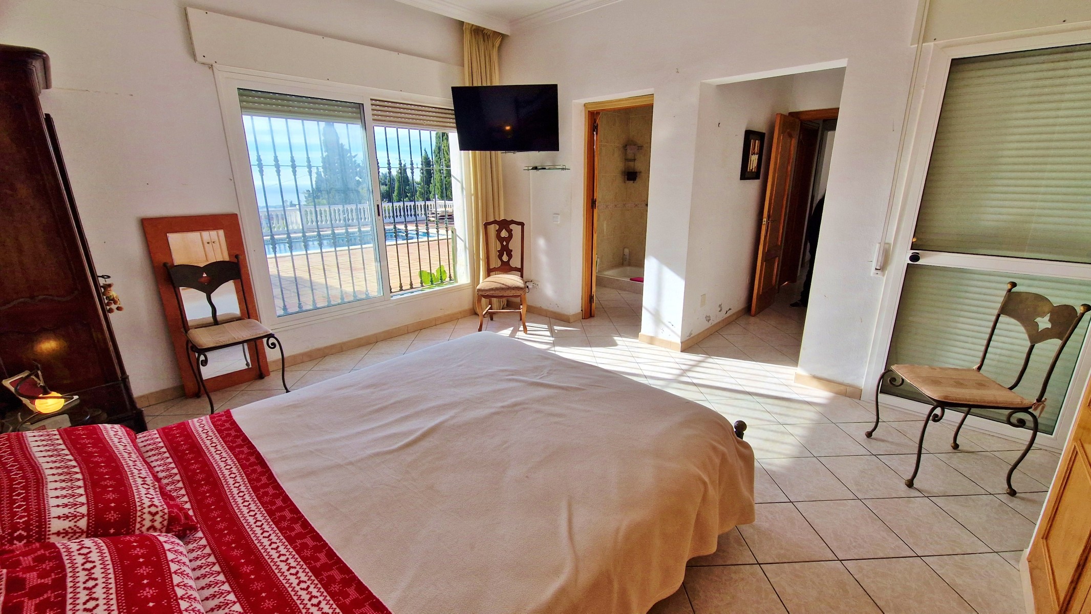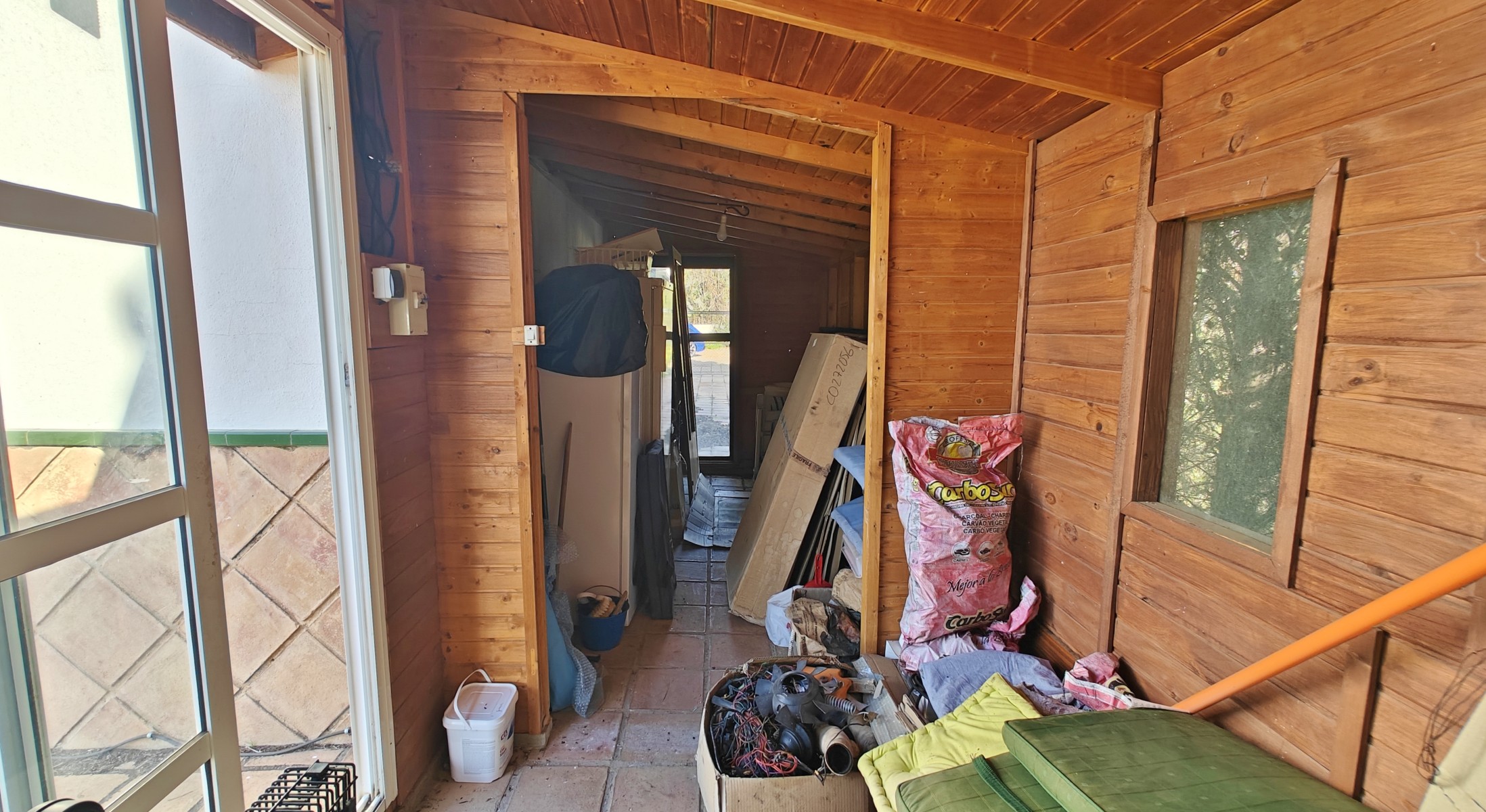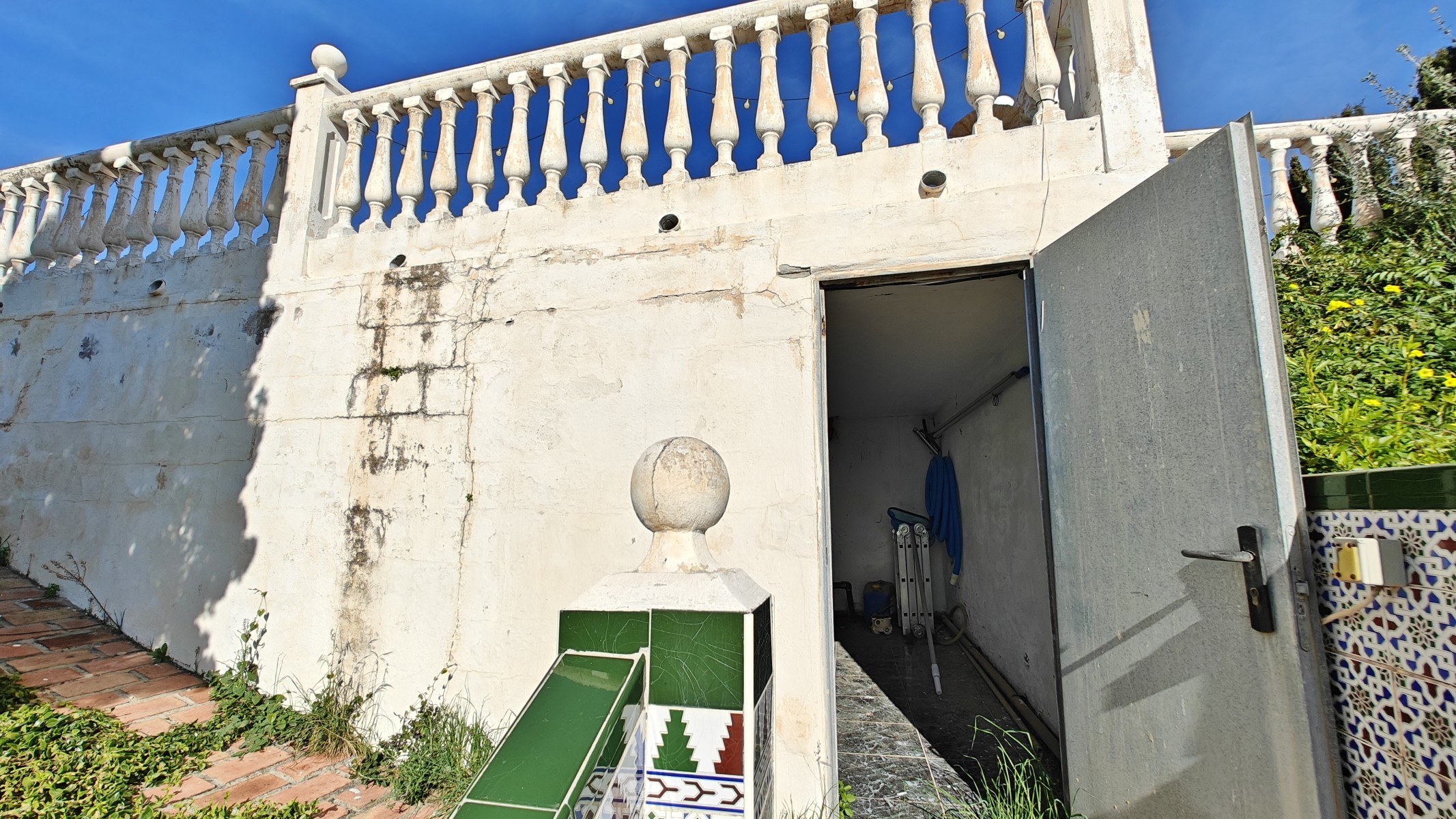 Located just 1.5Kms from the lovely village of Algarrobo and under 10 minutes from the coast, Casa El Ancladero is a spacious and unusual property, offering potential not only as a family home or for rental to tourism, but also as a lifestyle, as the lovely, flat grounds, with many trees and beautiful sea views, contain two spacious wooden chalets, registered as guest accommodation, with their own covered terrace areas, and set conveniently away from the main house. This gives potential to let these units to guests, simply to offer accommodation, or for activity holidays such as yoga, recuperation from illness, teaching holidays, etc. The chalets need some repairs and updating.