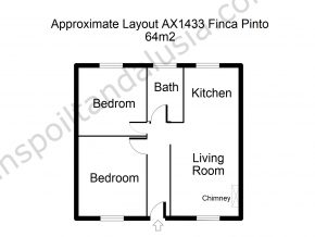 The house consists of a little open front terrace, leading through the front door to an open plan living room and kitchen/dining room, two double bedrooms and a bathroom, all in very good condition. The house is 64m2 but feels more spacious inside. the living room has a lovely open fireplace which in the winter keeps the house lovely and cosy.